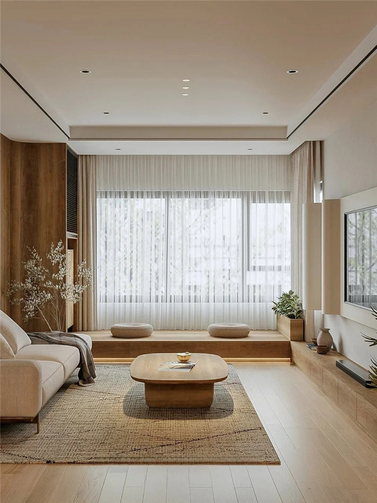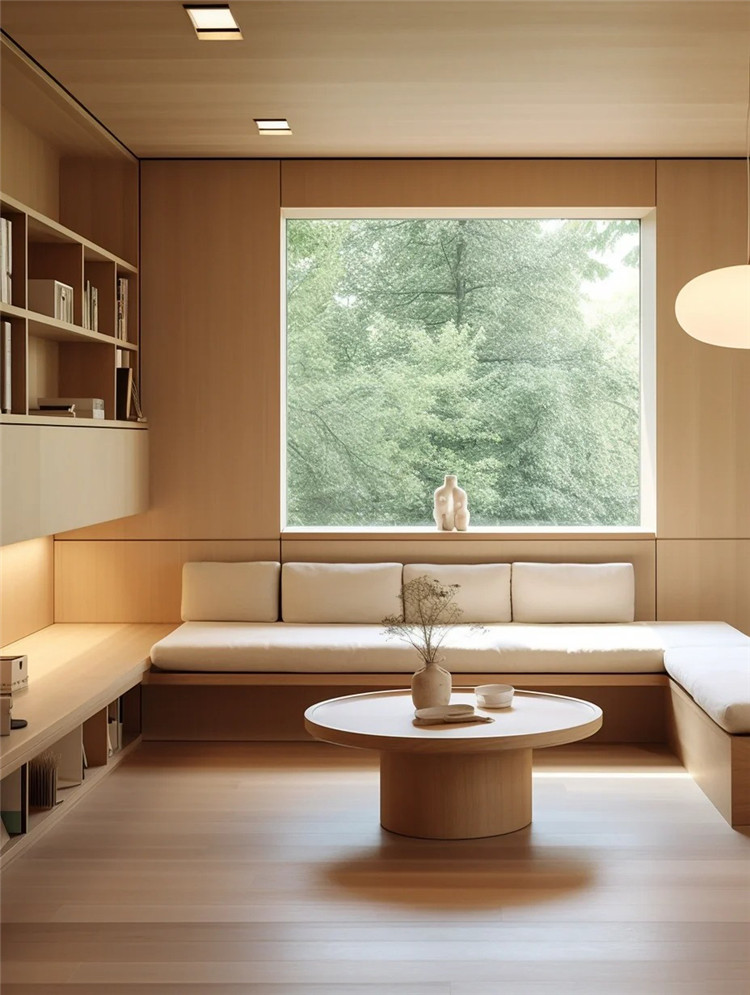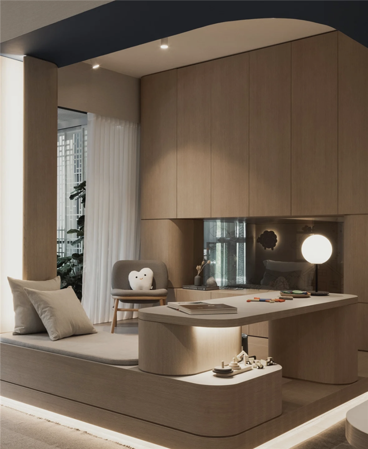 如室內空間充足,可于轉角處定制地臺,配上柔軟的坐墊與小桌,這里就是一個充滿詩意的茶室。