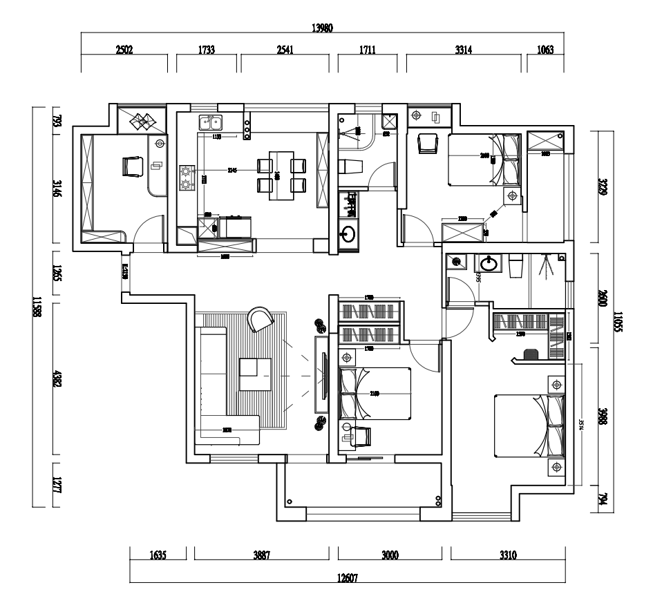百瑞景160㎡四居室清新自然風舒適家居戶型解析