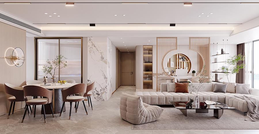 案例簡介:本案例業主夫婦對生活充滿了熱情,偏愛現代簡約風的文化,因此在進行家居設計的時候希望設計師能夠使用最簡約的元素打造出格調感。而在與業主深入交流后,設計師了解到這對夫妻平常最大的興趣愛好就是讀讀書,因此在進行空間規劃的時候預留了一個專門的書房。同時,整體的裝修風格選為現代輕奢風,以滿足業主的審美需求。