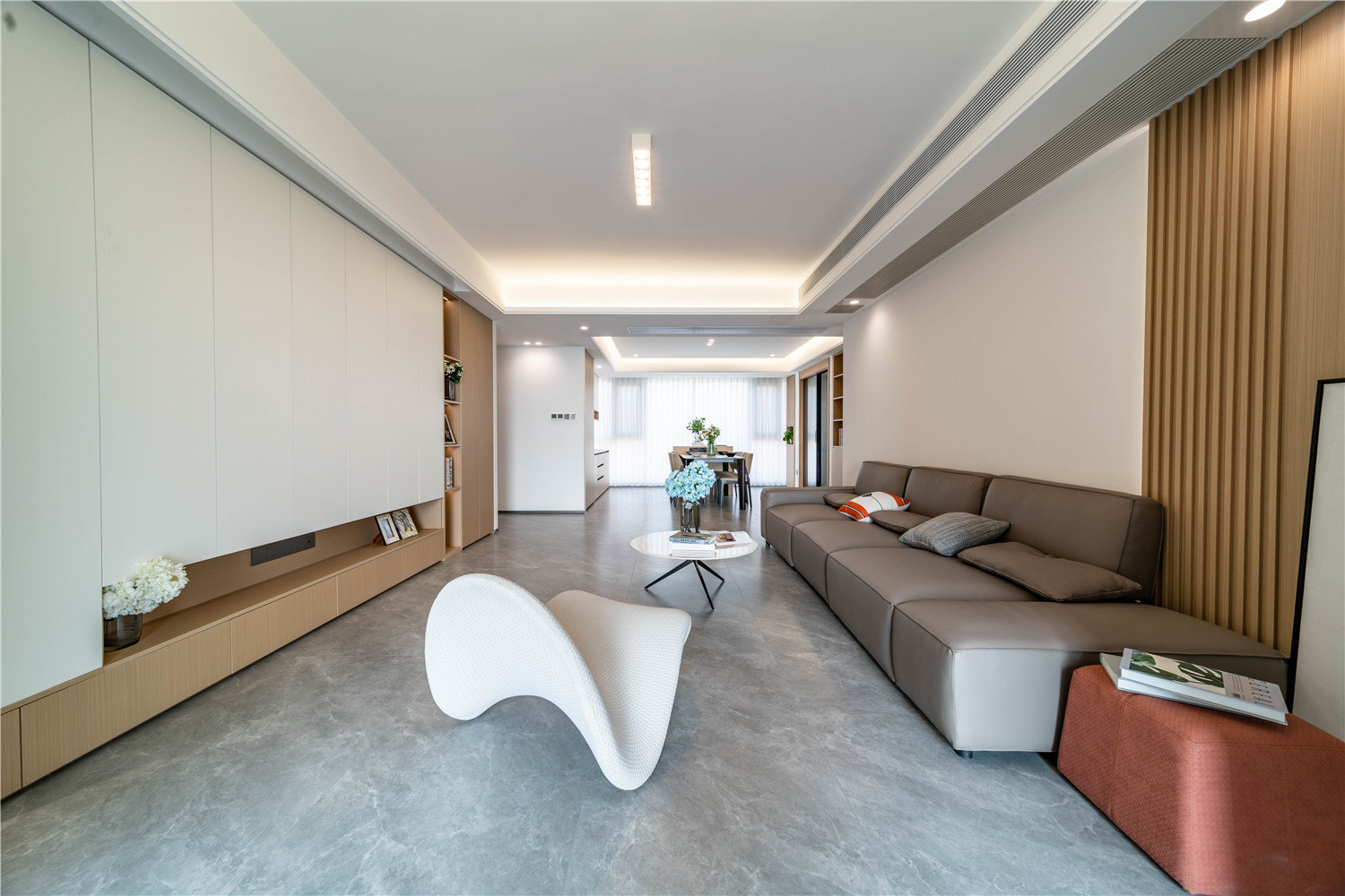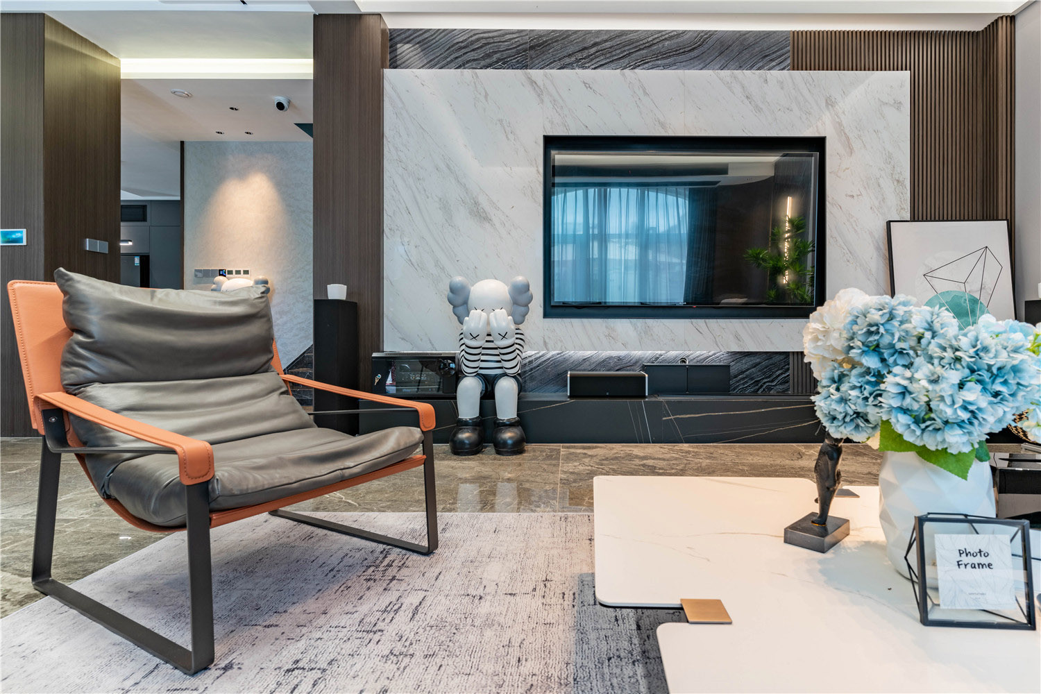 案例簡介:一個好的家裝設計能夠讓人徹底放松身心,更好享受閑暇時光的美好。而本案例的業主喜歡簡單的元素,不喜歡各種花里胡哨的造型設計,因此希望設計師能夠根據自己的審美打造出一個簡約而又不簡單的品質住宅。根據業主的需求,設計師選擇了簡約風進行室內裝飾,同時利用高檔材料本身的質感來提升室內環境的品質。