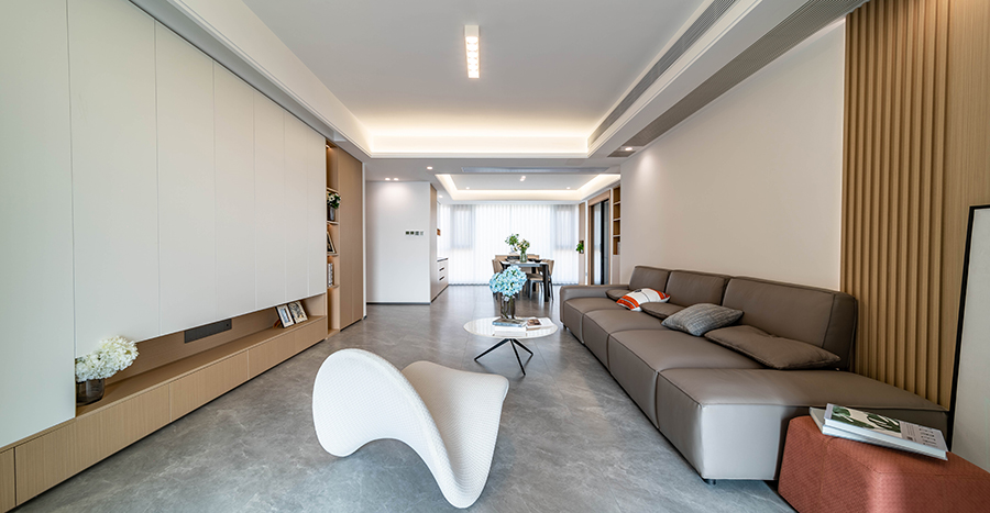 案例簡介:本案例的主人公對于簡約而又品質的舒適生活情有獨鐘,因此在進行室內裝飾的時候她希望設計師不用使用過于艷麗的色彩以及各種網紅化的元素,以簡簡單單的舒適感為主即可。設計師根據業主的需求審美以及生活習慣,為業主挑選了素雅感較為強烈的簡約風作為主裝修基調,舍棄大量華麗而又繁瑣的元素,利用材料原始的質感來營造一種返璞歸真的自然舒適感。