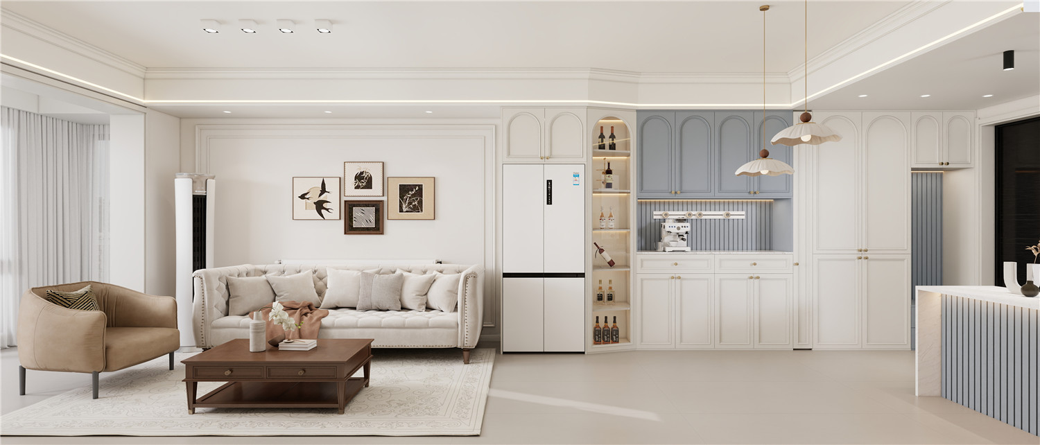 案例簡介:本案例的家庭為幸福的五口之家,除了業主夫妻二人外還有業主的父母與孩子,因此業主希望設計師能夠根據不同家庭成員的需求對空間進行合理的規劃與設計,以提升起居幸福感。而在與所有家庭成員進行一定交流溝通后,設計師折中選擇了認可度比較高的現代輕奢風作為空間主裝修基調,而色彩的選擇上則以簡潔素雅為主,這樣相對比較耐看且易于打掃。