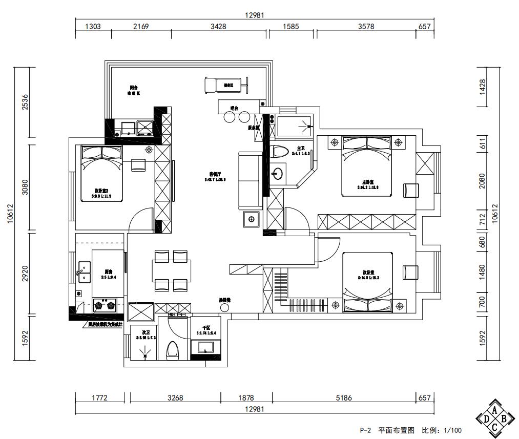2、整合餐廳、陽(yáng)臺(tái)與廚房,新布局容納中西廚、儲(chǔ)物空間,并與餐廳融合,實(shí)現(xiàn)多功能一體化。