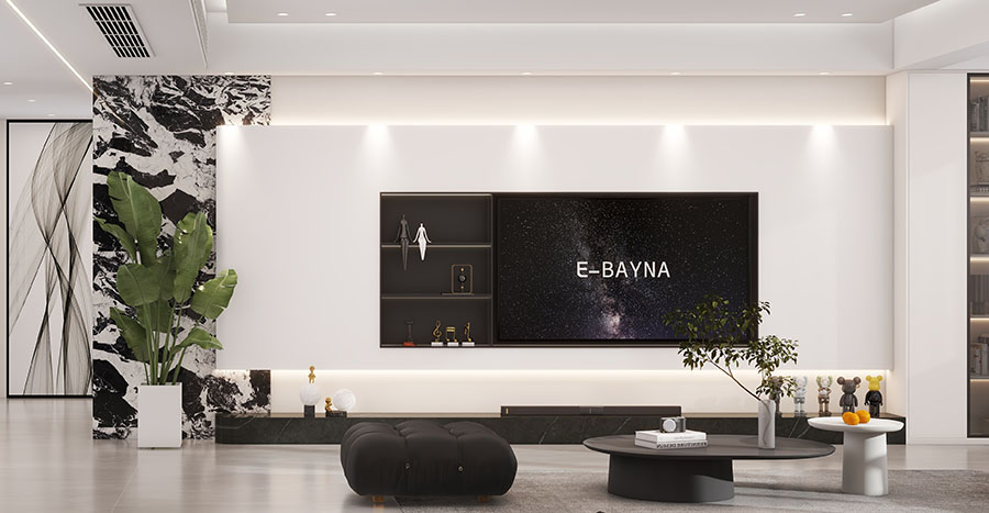 天然石材作為地臺(tái),與懸浮電視背景及燈線精妙融合,于靜謐中流露藝術(shù)韻味,巧妙平衡休閑與雅致,構(gòu)筑出別具一格的生活美學(xué)空間。