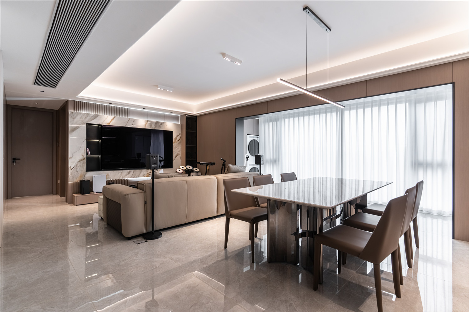 案例簡介:本案例的業主對于生活品質有著比較高的追求,因此希望所打造出來的別墅空間能夠具有高級的品質感。業主提出,自己不喜歡各種華麗造型打造的別墅空間,這不僅僅容易造成視覺壓迫感,整個還給人張揚感。因此,設計師為業主選擇了現代輕奢風進行軟裝,整體呈現高級品質感而又不顯得刻意且張揚,在無形中展示主人的高雅品味。