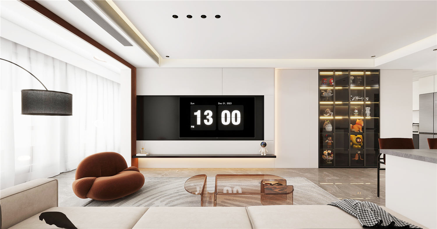 案例簡介:本案例的主人公是一對即將走入婚姻殿堂的85后夫婦,其中男主人是畫家,對藝術與時尚有著較高的追求,因此希望在家中設計中能夠融入一些藝術感的元素。房屋的女主人作為教師則偏愛簡約的元素,如何將簡約與藝術進行融合是本次的設計要點。設計師根據夫妻二人的喜好選擇了現代簡約風進行軟裝,同時借助定制式家具與細節處理來提升整個家居環境的藝術感。