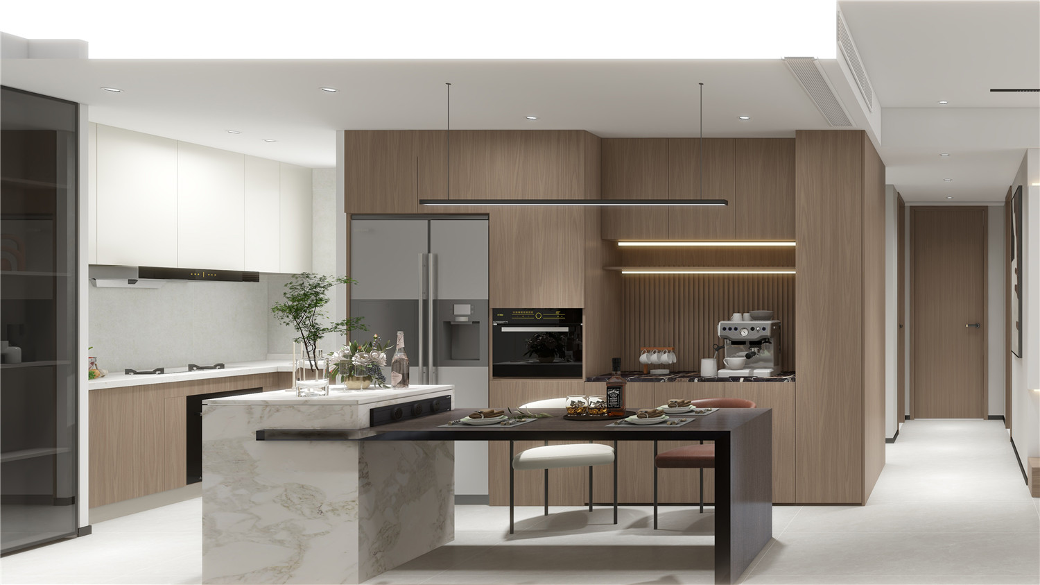 案例介紹:縱使腳步匆忙,也難抵業主對生活的向往。本案用橫平豎直的線條來勾勒東方古風中神清氣朗、干脆利落的氣質,還通過家私配飾來描述東方人“知足常樂”、“民以食為天”的閑適自在的心態。