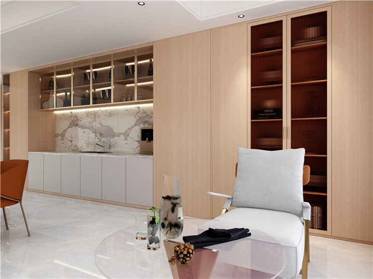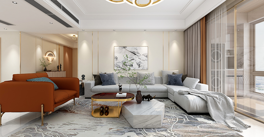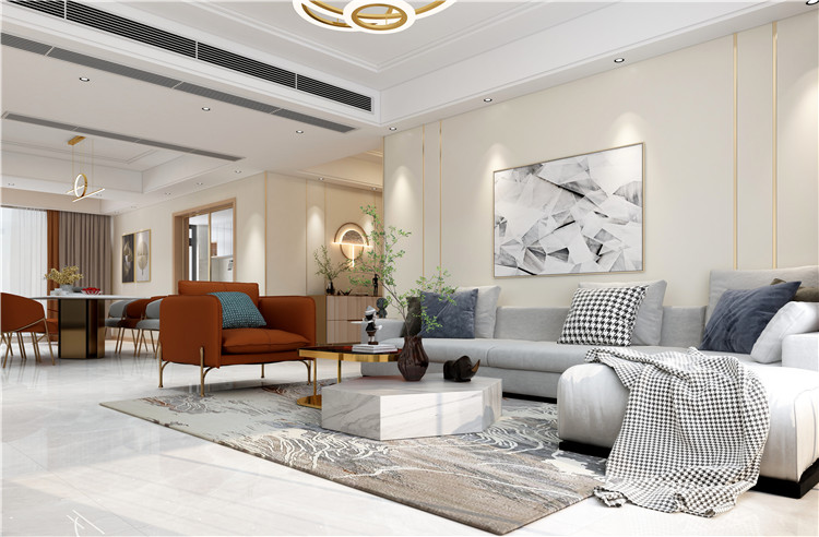 案例介紹:本案例業主為即將結婚的新婚夫妻,二人在婚前購置了這套房,但是由于工作繁忙,因此選擇將所有的工程專業的人士來負責,而他們的要求就是能夠化解空間狹窄劣勢,同時營造出一種喜慶而又不落俗套的個性化氛圍。設計師按照業主們的需求選擇了輕奢風作為家裝風格,搭配以各種細節感十足的裝飾,以在無形之中強調貴氣與喜慶。