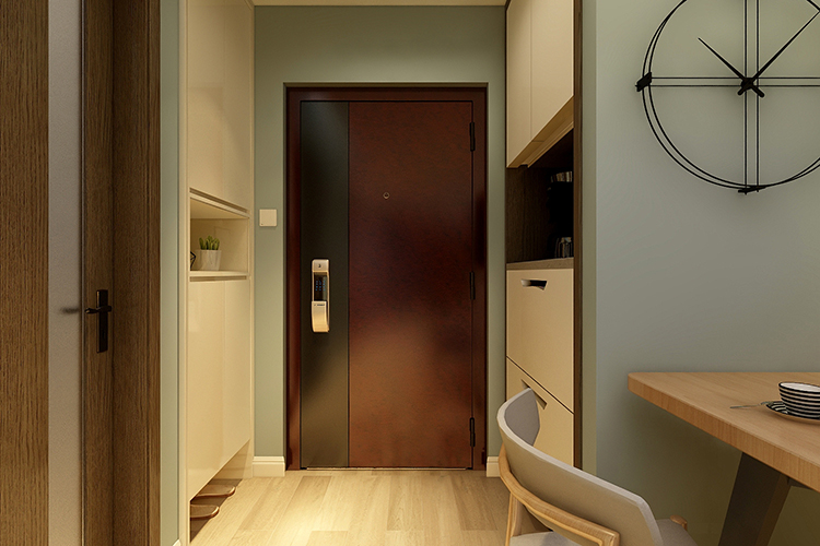 本案例的玄關其實就是一個迷你入戶走廊,面積并不大,因此設計師僅選擇了一幅趣味性十足的掛畫作為裝飾點綴,避免占用較多空間。