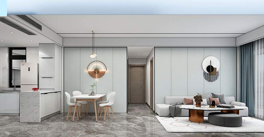 案例介紹:本案例業主為一對年輕的夫婦,帶有一個剛上幼兒園的小朋友,因此業主的設計需求是將空間進行合理的規劃設計,以滿足一家三口的使用需求,同時為孩子規劃出一片學習、玩樂的小天地,以保障孩子能夠健康快樂的成長。設計師依照業主的想法選用了簡約而又明快的北歐風裝飾空間,同時在家居空間中多個區域點綴上帶有童心的裝飾,以保障房屋能夠更好符合年輕業主及小朋友的審美。