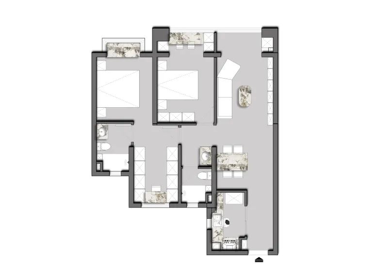 3 主衛(wèi)納入主臥,形成私密、便捷的舒適套臥。