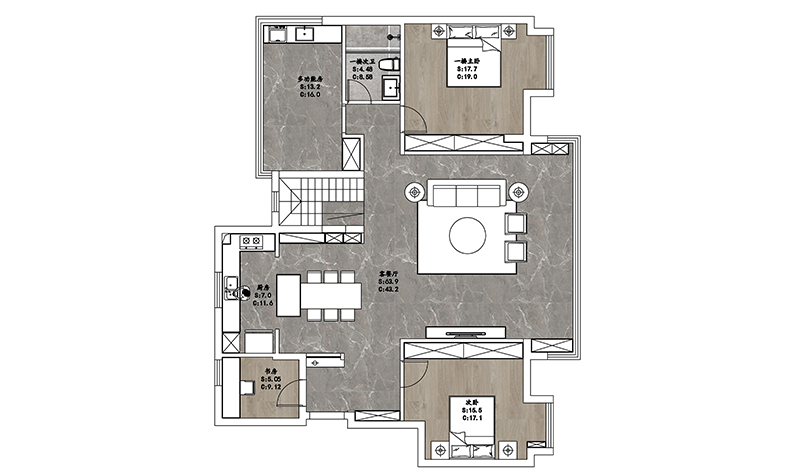 業主對家的定義:家里有兩個孩子,一個上四年級,一個上初一,210㎡四房戶型基本夠我們使用,主臥的原始面積不夠大,雖然自帶衛浴間,但居住起來有些不夠舒展,希望主臥能有一個更衣室,令空間看上去更開闊,另外,客廳有一些零碎的角落不知道如何調整,希望設計師利用這些角落,盡可能令房間變得更舒展。風格上,我們希望呈現出的是有品質,能凸顯生活品味的設計方案。