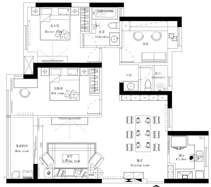華僑城這套五居室的別墅占地面積譽為235㎡,戶型結構四方且平整,空間劣勢在于入戶拐角區域的面積過于寬敞,且從風水的角度上分析該區域不適合作為休憩空間。本案例設計師則將該區域直接進行小隔斷,將該區域的外部空間打造成廚房,內部區域則改造為一個迷你的儲物間,收置各類零碎物件,以提升家居生活品質感。
