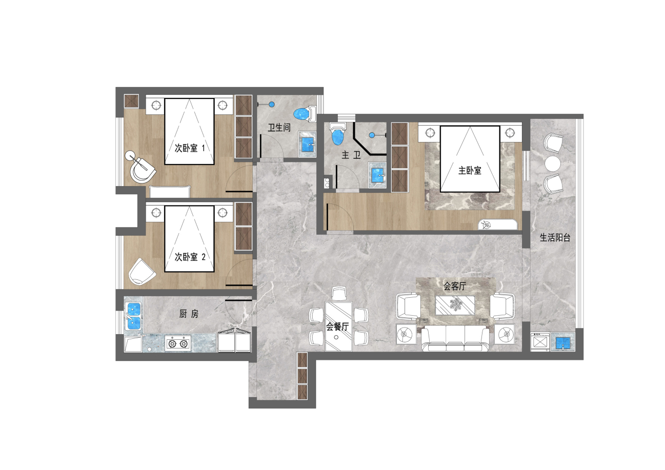 3 主衛納入主臥,與家人互不干擾,提升生活質量。