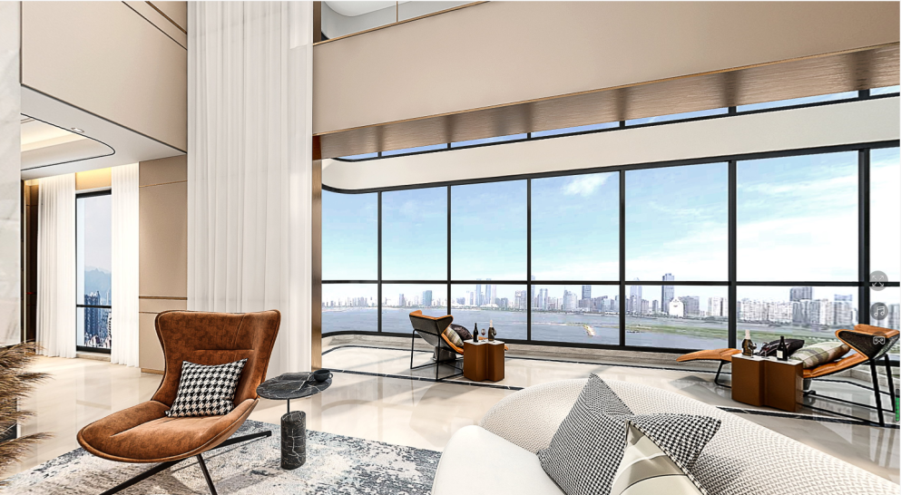 • 延續總體的構造布置落地窗,讓自然光線可以照進室內。閑暇時刻與家人、朋友一起聊聊天、喝喝茶、看看風景,體會人生的美好。
