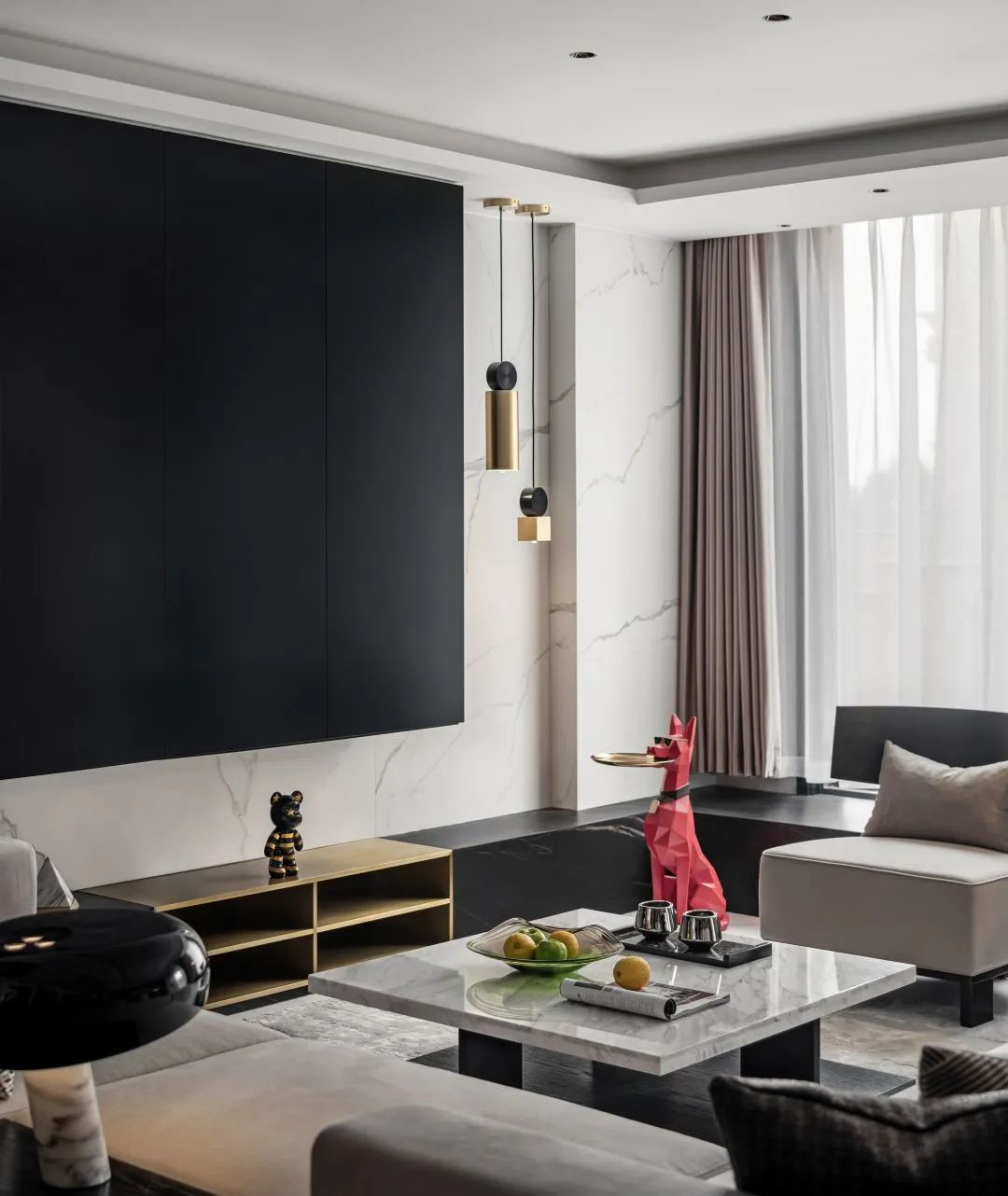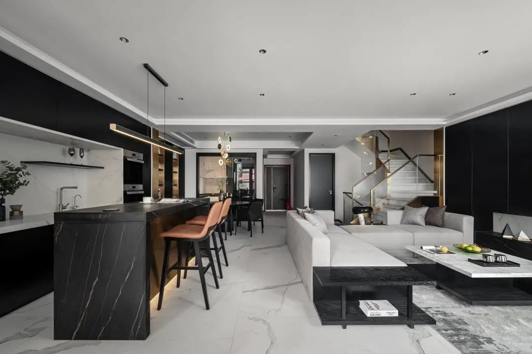 90后的男主人對新家的期待就是舒適,動靜相宜;三五好友聚餐,舒適的居 家辦公,還有女主人希望的美觀和收納簡單。設計師融合業主的生活方式于 設計之中,給出了一個最恰當的回答。 現代的家居理念注重功能與空間組織,無主燈不顯壓抑,輕薄的吊頂造型增 加設計感。沙發圍坐的布局尤其適合朋友聚會,愜意的周末生活就從舒適的 沙發開始吧~ 讓空間發揮最大的使用效能。家具的選擇上強調讓形式服從功能,一切從實 用角度出發,廢棄多余的小裝飾,點到為止才是裝飾的最優解。 簡約,不僅僅是一種生活方式,更是一種生活哲學。 中餐圓桌更適合中國人圍坐的飲食氛圍習慣,客餐廳作為一個整體,家具搭 配上具有連貫性,視覺和諧。 陽臺納入主臥,設計休閑辦公區滿足功能需求,單面跳色呼應整體設計色彩 。