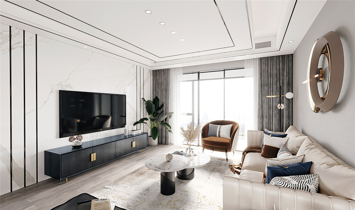 本案中,設計師以“簡化生活”為設計理念,以“回歸”為主題構思,是為了滿足業主希望在繁忙的一天工作后,回到家中去找尋一份寧靜與溫暖的訴求,讓業主回歸家、回歸生活、回歸自然。現代簡約風格客廳是當下很受人們歡迎的一種設計搭配。無須華麗的裝飾,無須貴重的家具,簡單的顏色搭配帶來的明媚感將整個客廳的拘謹一掃而空。材料運用和色彩選擇上顯得額外低調和柔和,整個空間色彩搭配顯出個性與品位,簡約而時尚,可以承載更多的時尚元素,同時讓家更寧靜而溫馨。空間以自然的色調與簡約的設計相融合,不僅反映出現代人追求簡單生活的居住要求,更體現出家居設計風格的內斂和質樸,使簡約風格更加實用、更富現代感。