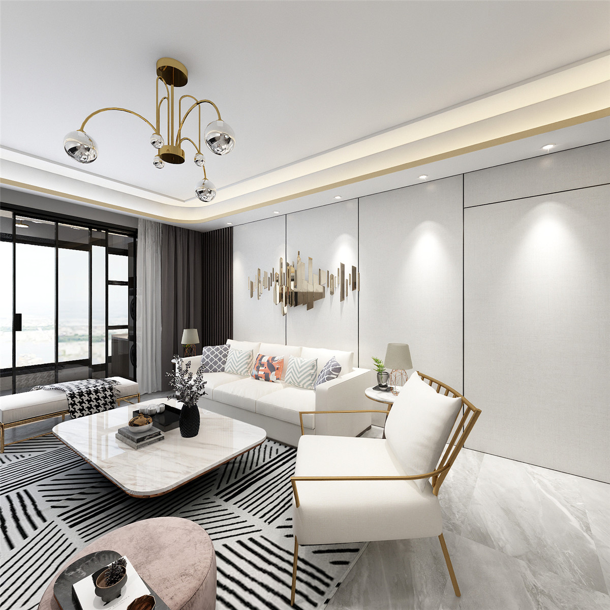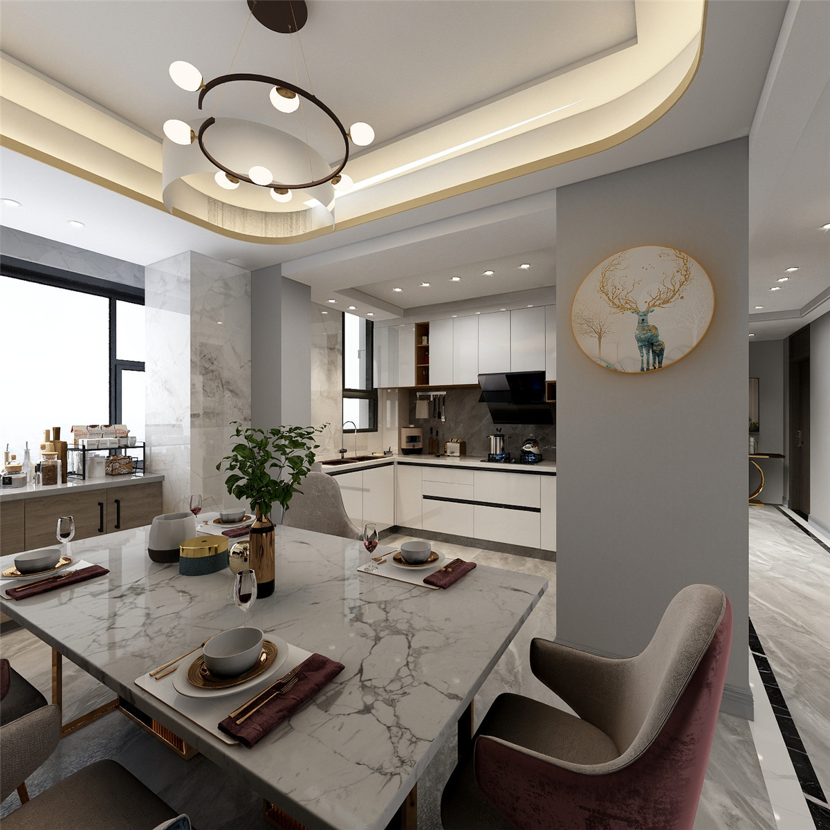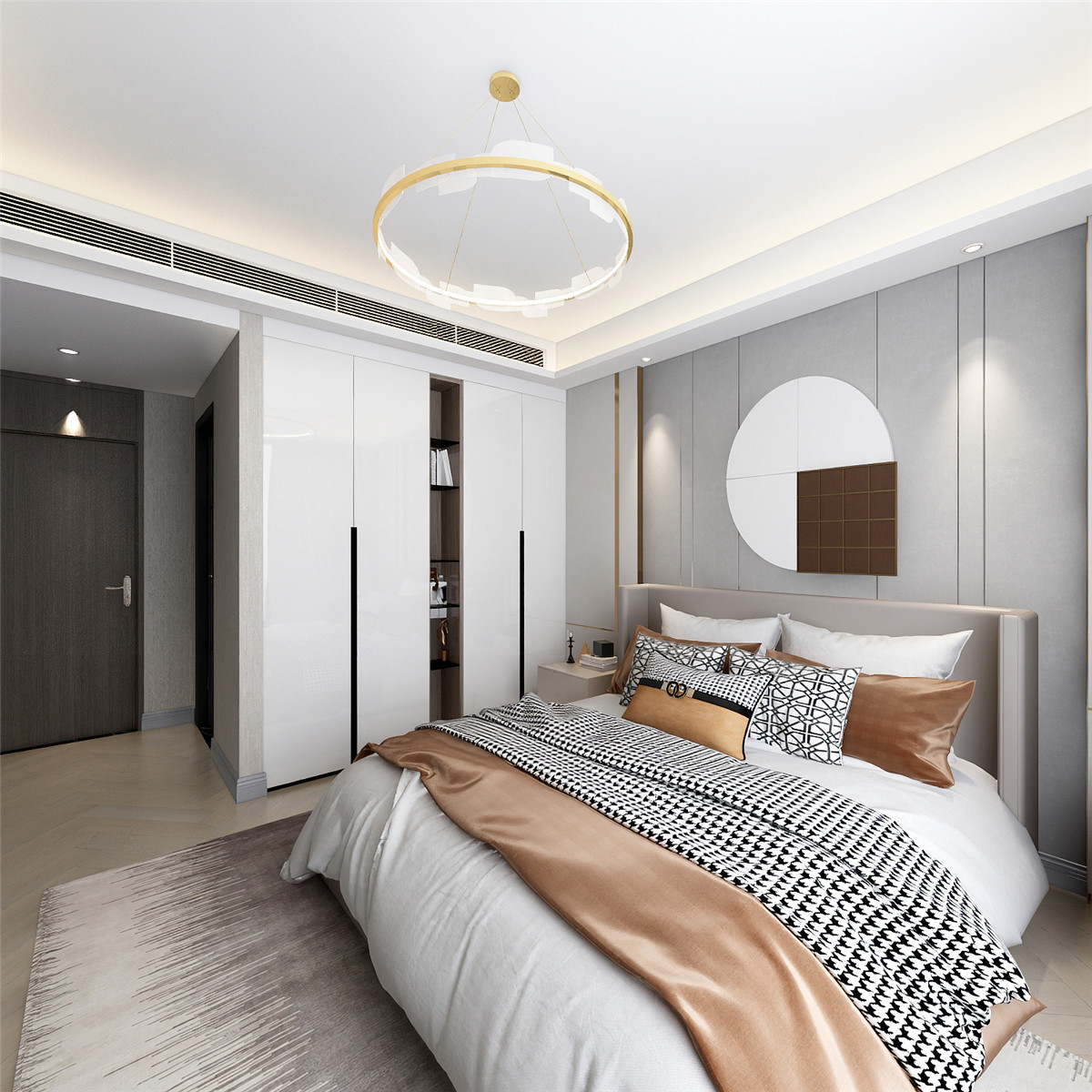 簡潔中配著奢華的軟裝家居,溫馨而又品質。開放式餐廚空間充盈自由與個性,軟飾的餐桌椅,金屬與大理石,不經意間流淌出藝術質感,也注入法式餐廳的氣息。閑時憑身處云端,卻想透過都市層層霓虹外衣,去尋找內心的靜謐?,睡眠的安定。光與影, 點燃一室輕奢。