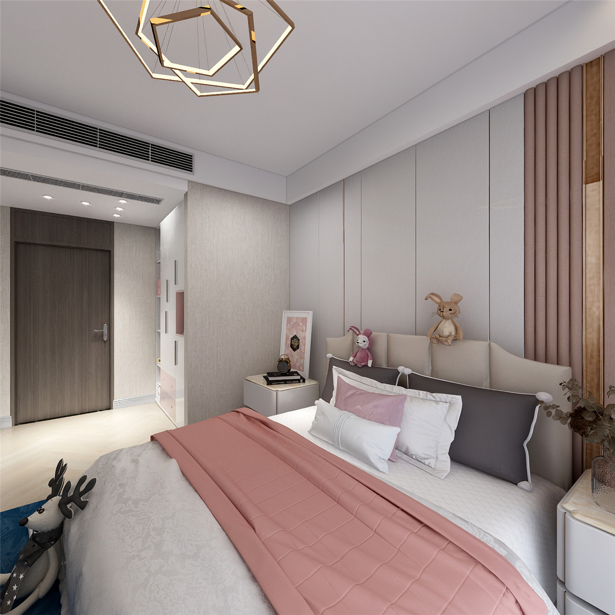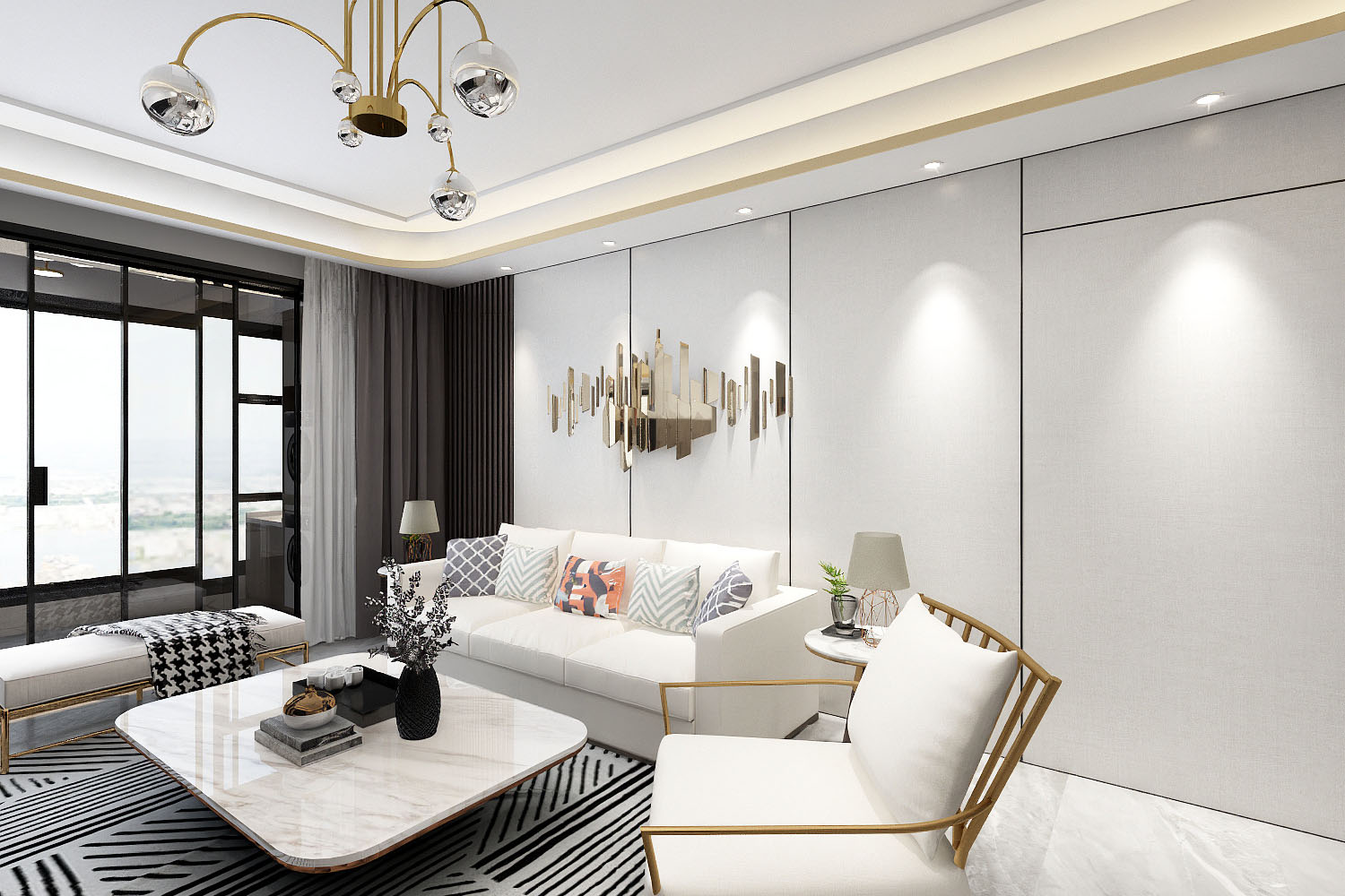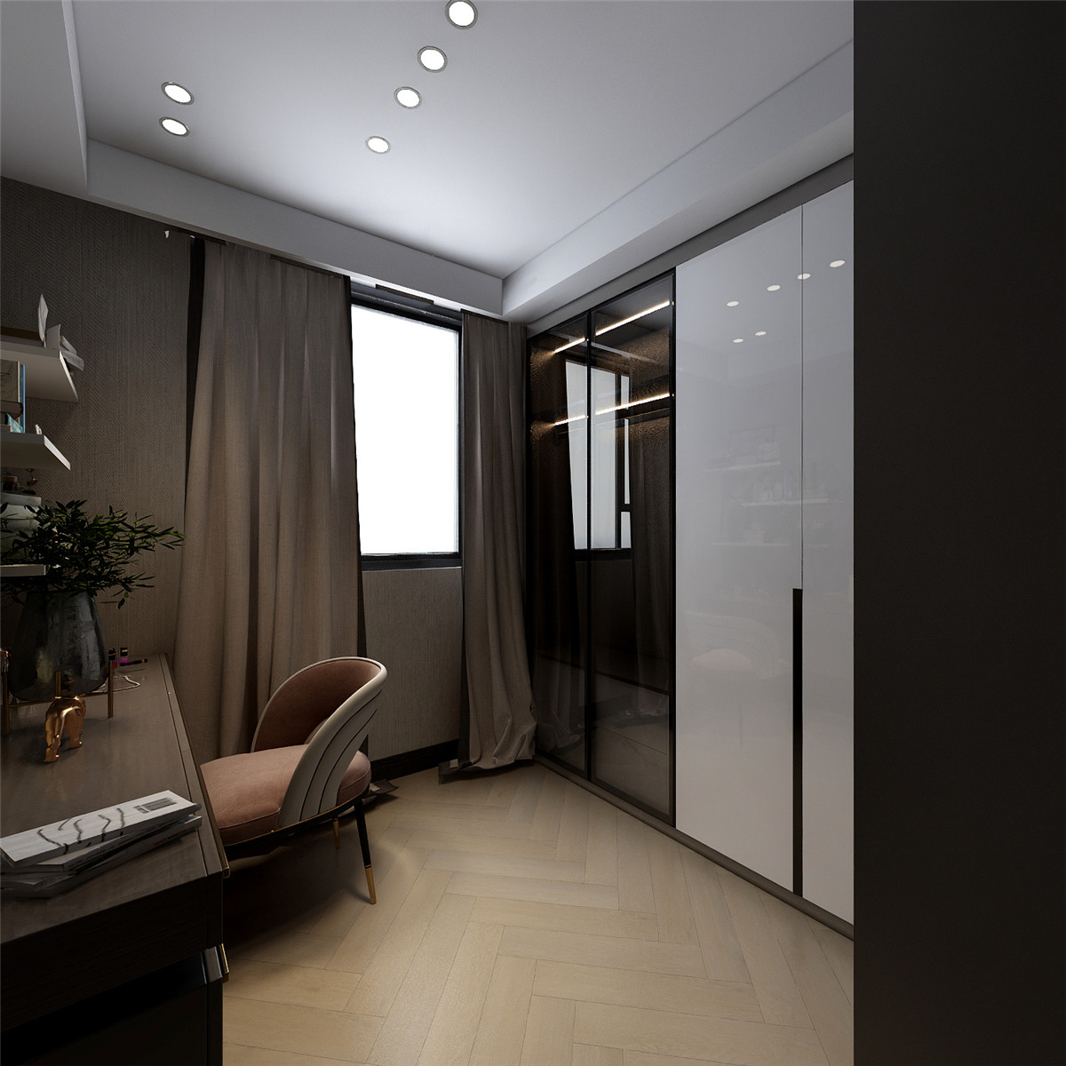 簡潔中配著奢華的軟裝家居,溫馨而又品質。開放式餐廚空間充盈自由與個性,軟飾的餐桌椅,金屬與大理石,不經意間流淌出藝術質感,也注入法式餐廳的氣息。閑時憑身處云端,卻想透過都市層層霓虹外衣,去尋找內心的靜謐?,睡眠的安定。光與影, 點燃一室輕奢。