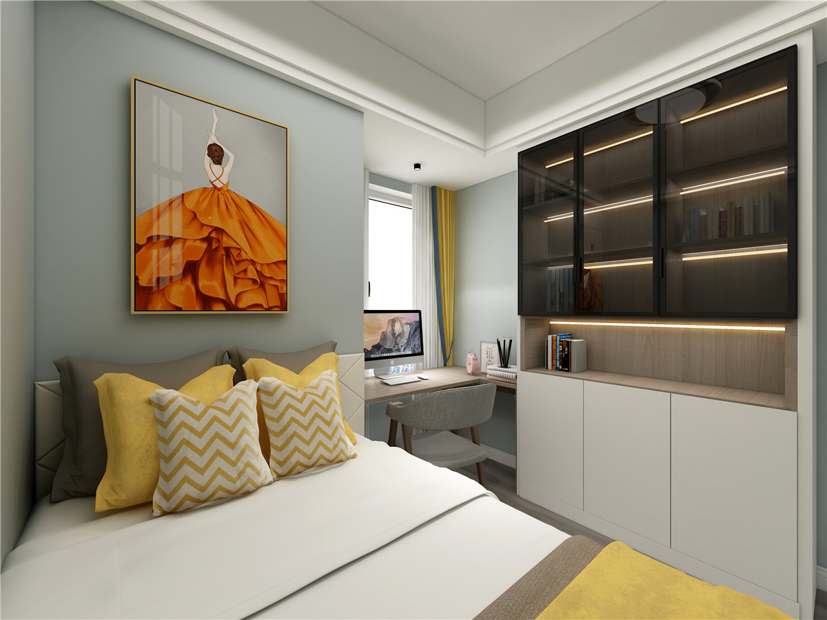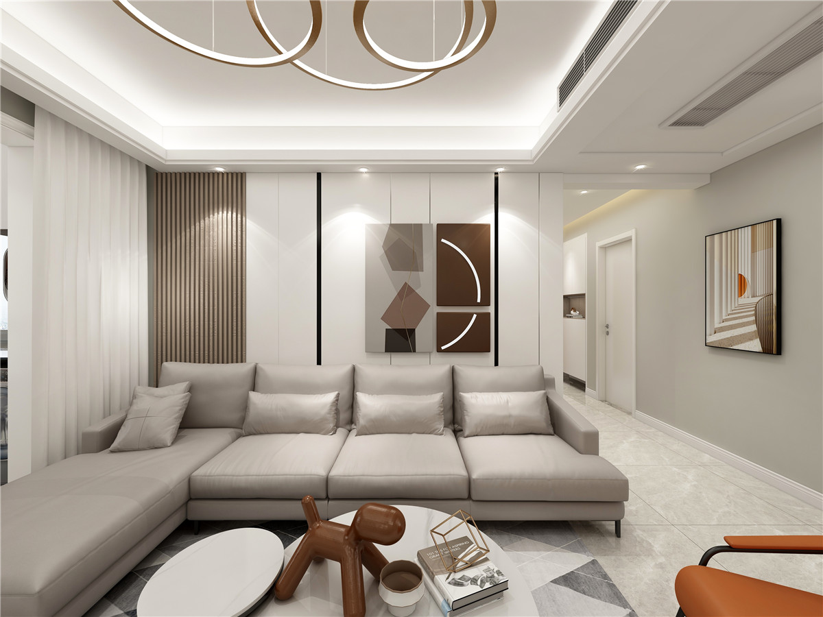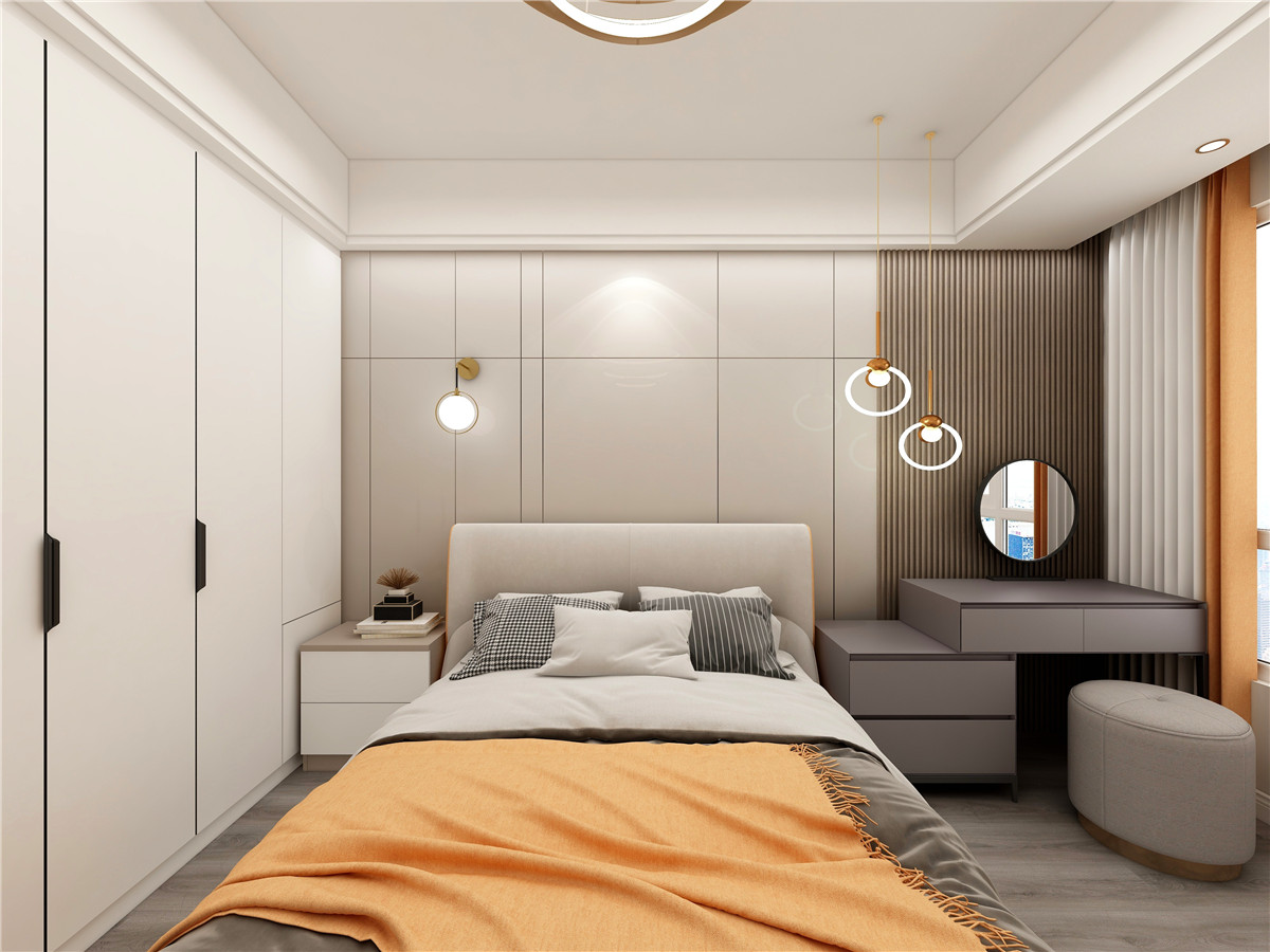 全房色調統(tǒng)一,視覺上舍棄張揚的造型,線條與色塊的巧妙運用營造出穩(wěn)定,協調,溫馨輕松的空間氛圍,細節(jié)之處流露出精致的生活情調