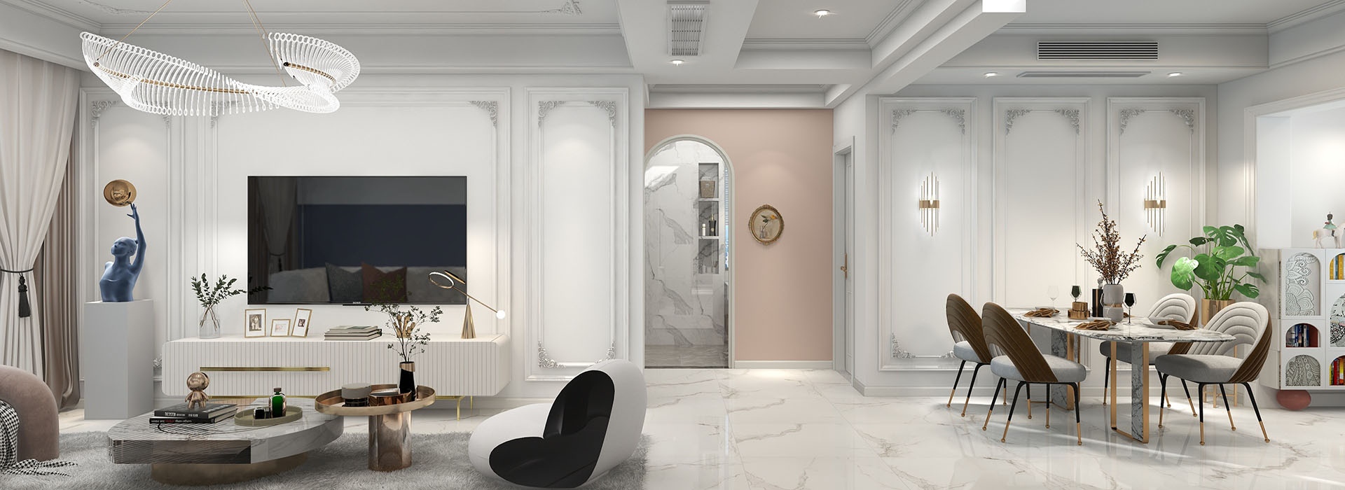 寧靜的空間,簡單卻帶著滿滿的高級(jí)感,純凈中尋找不一樣的一抹色彩。