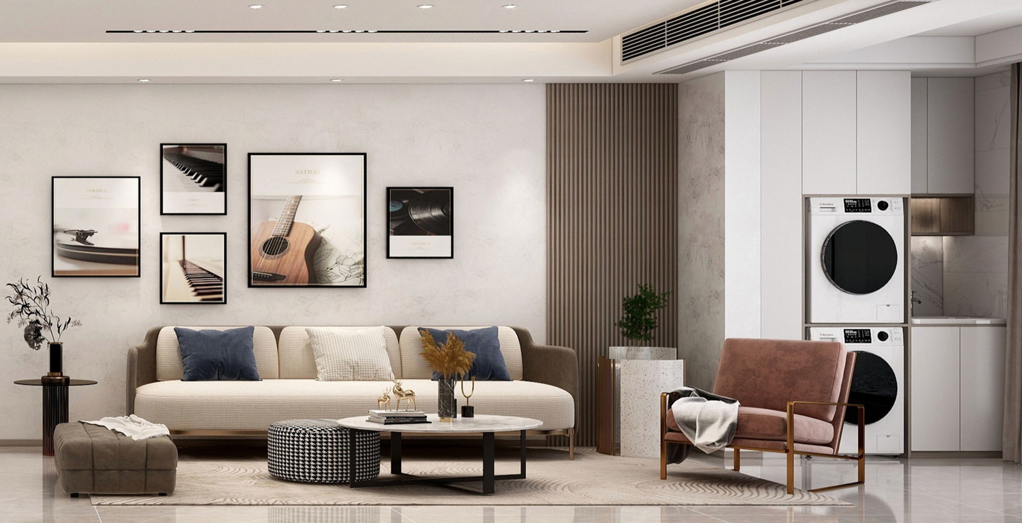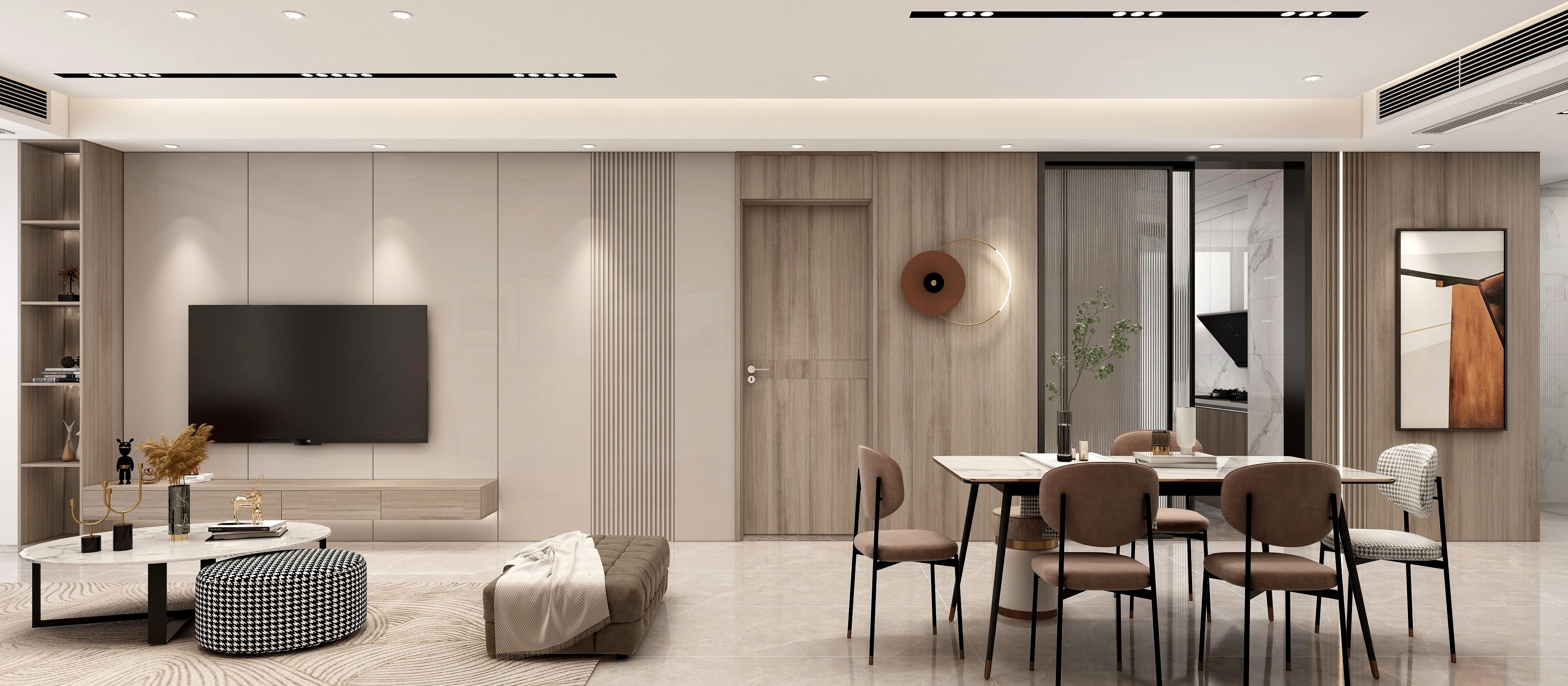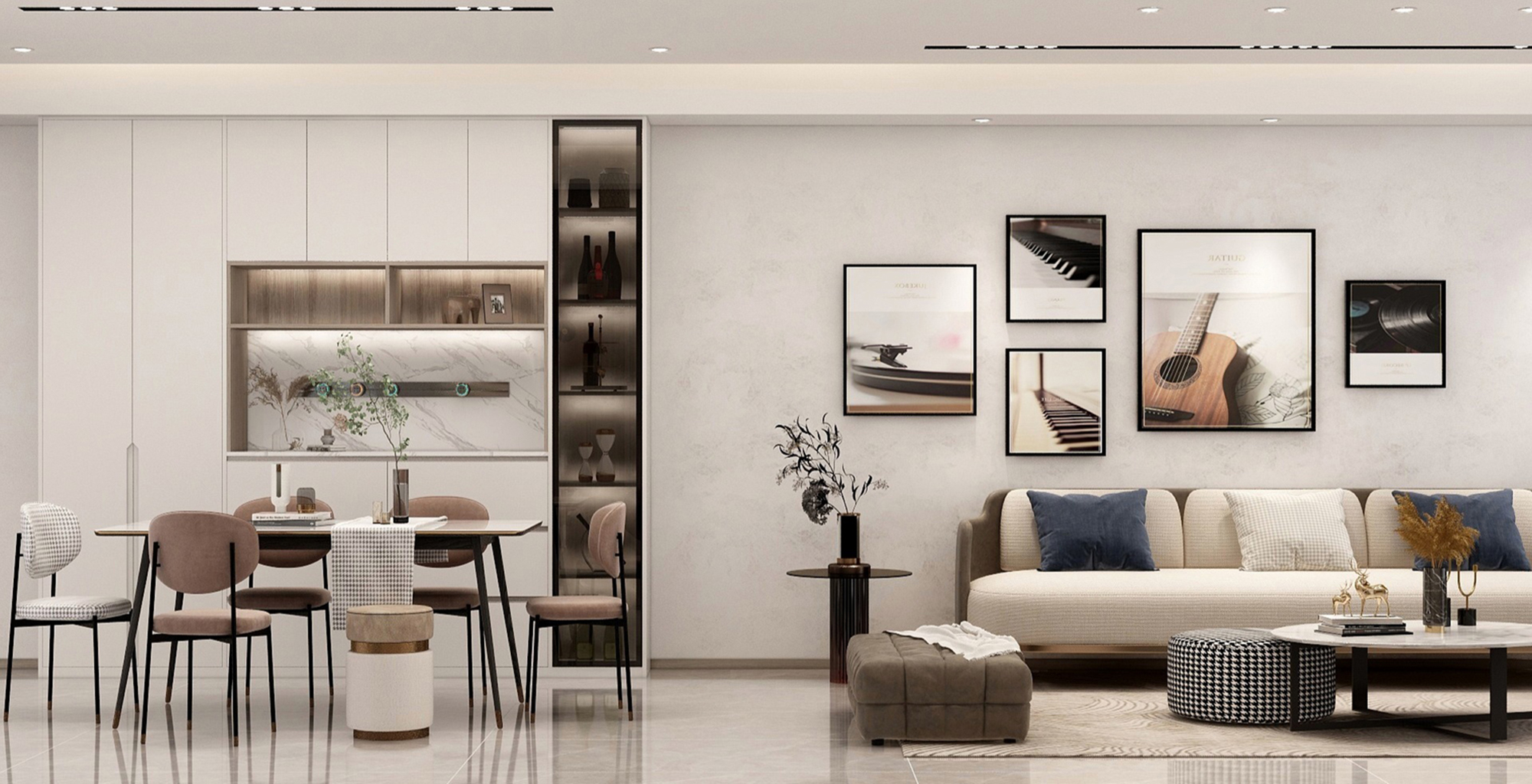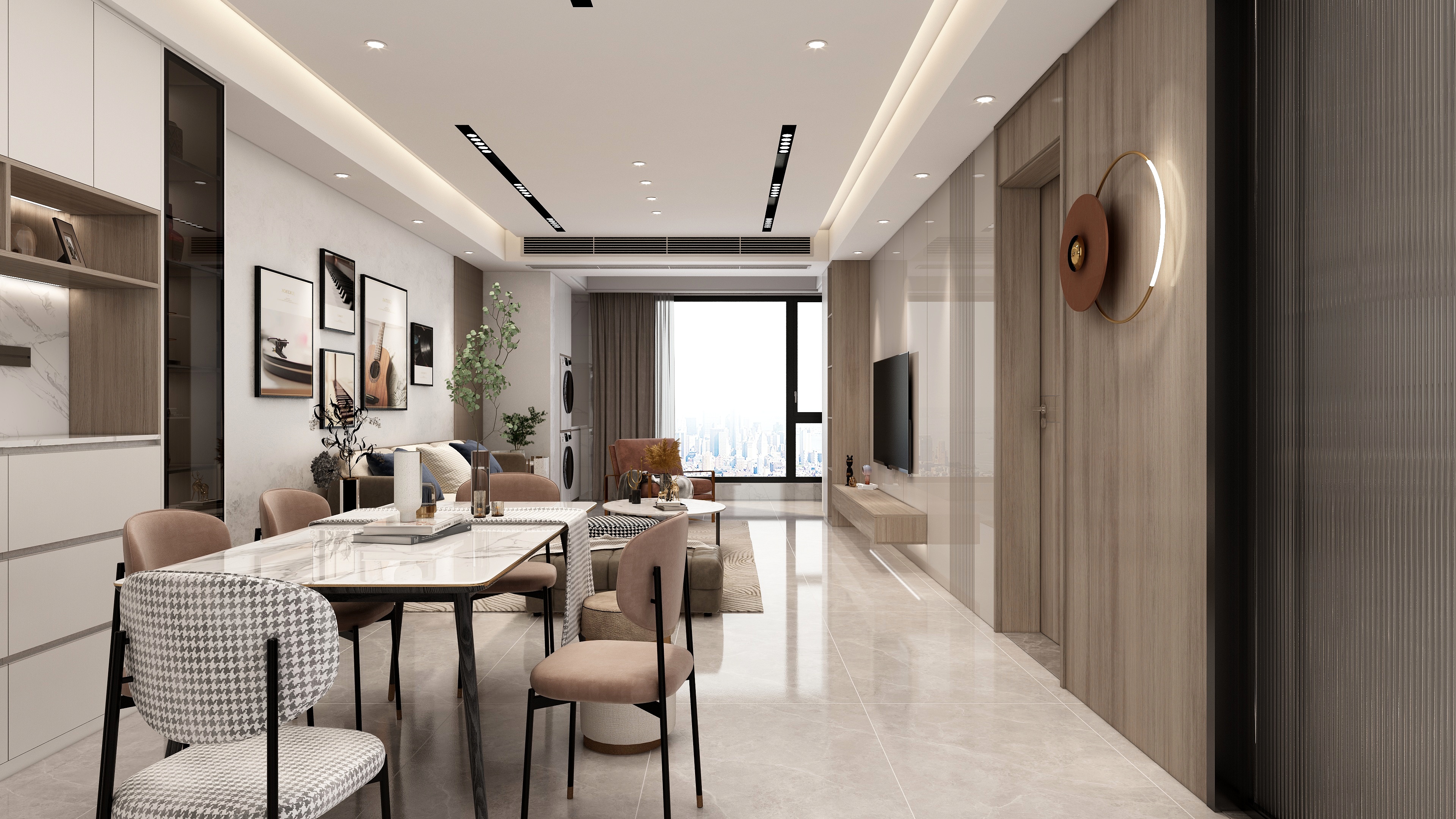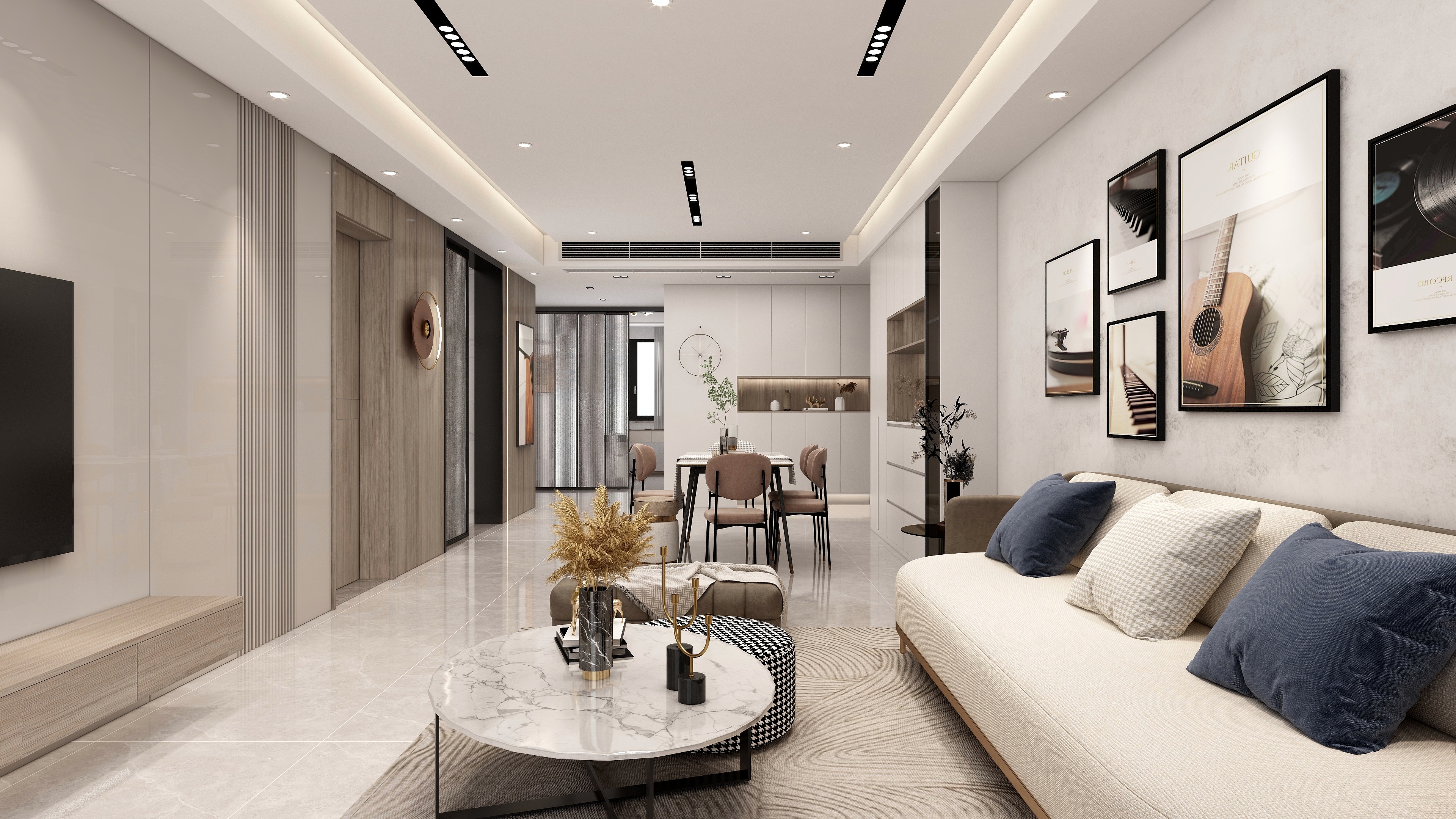 雅致,內斂,是客廳帶來的第一印象,簡潔的布局,營造時尚的空間氛圍。陽臺擴入客廳,地面通鋪大理石瓷磚,讓目光所及之處,構成了輕盈流暢的視覺效果。