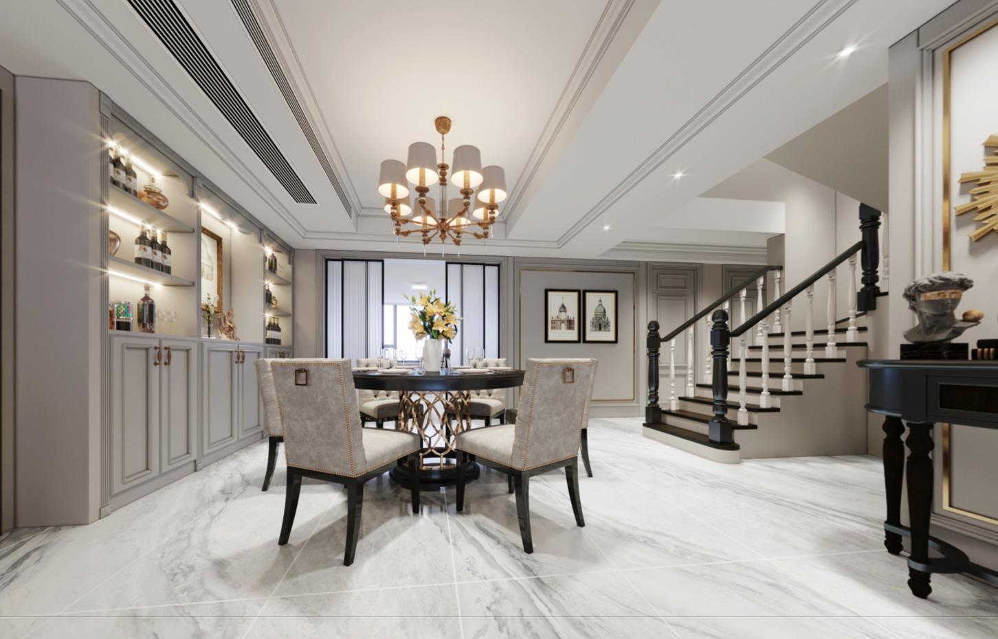 這套復式樓主要以淺色裝飾為主色調,以平實樸素的色調塑造整個空間;增添成熟穩重的基調,在舒適優雅的基礎上,也體現生活化的一面。