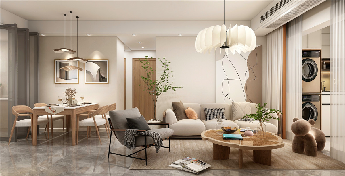 愜意,和生活一樣,看似暗淡,卻蘊藏著美的無限雋永。溫潤淡樸的基調, 把空間平鋪成一張偌大的畫布,沙發是柔美的弧形,契合了想表達的柔美與優雅。樸實 、純粹的材質與簡約、自然,不帶一絲造作的中性配色,賦予寧靜的愜意氛圍。