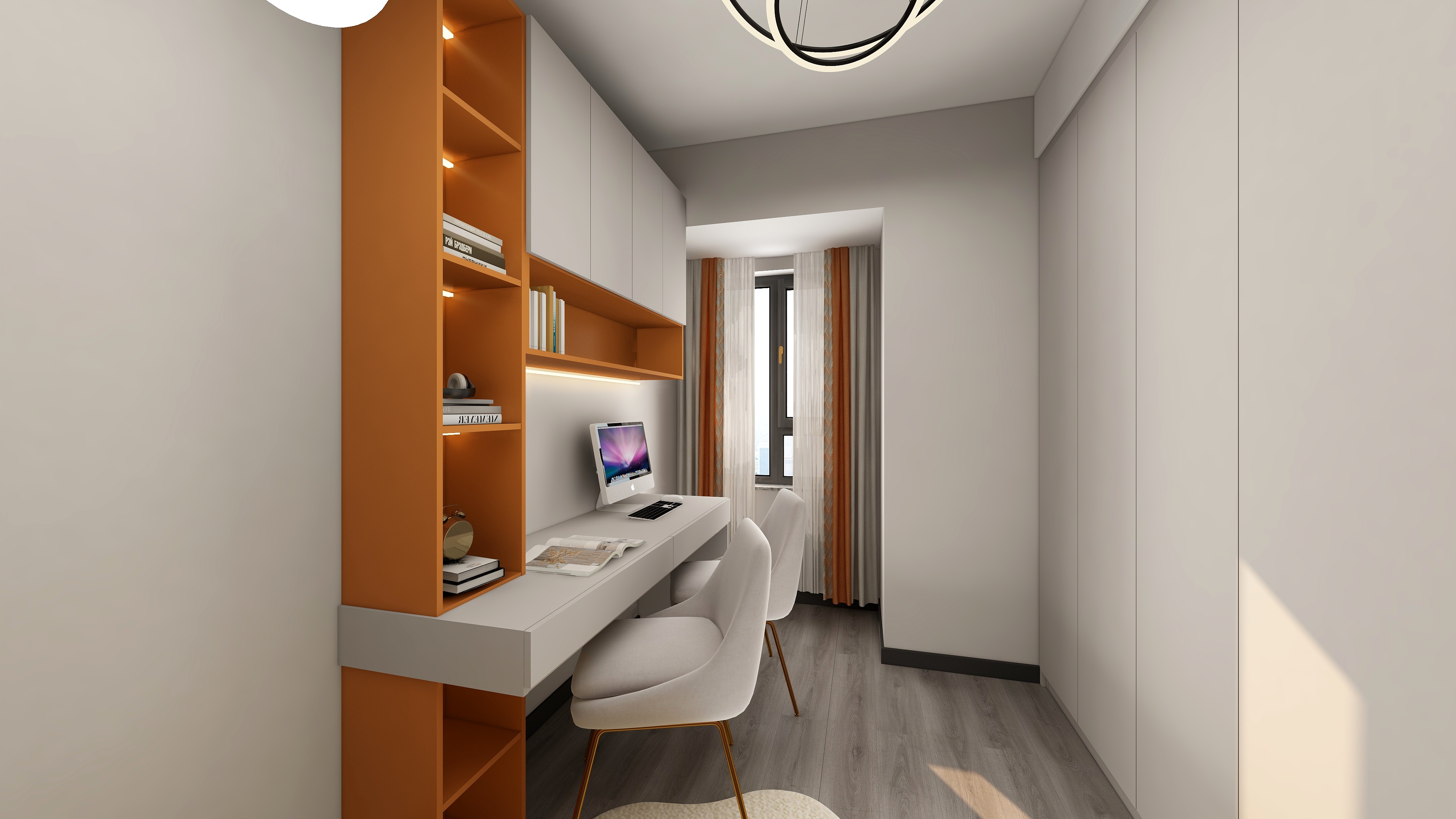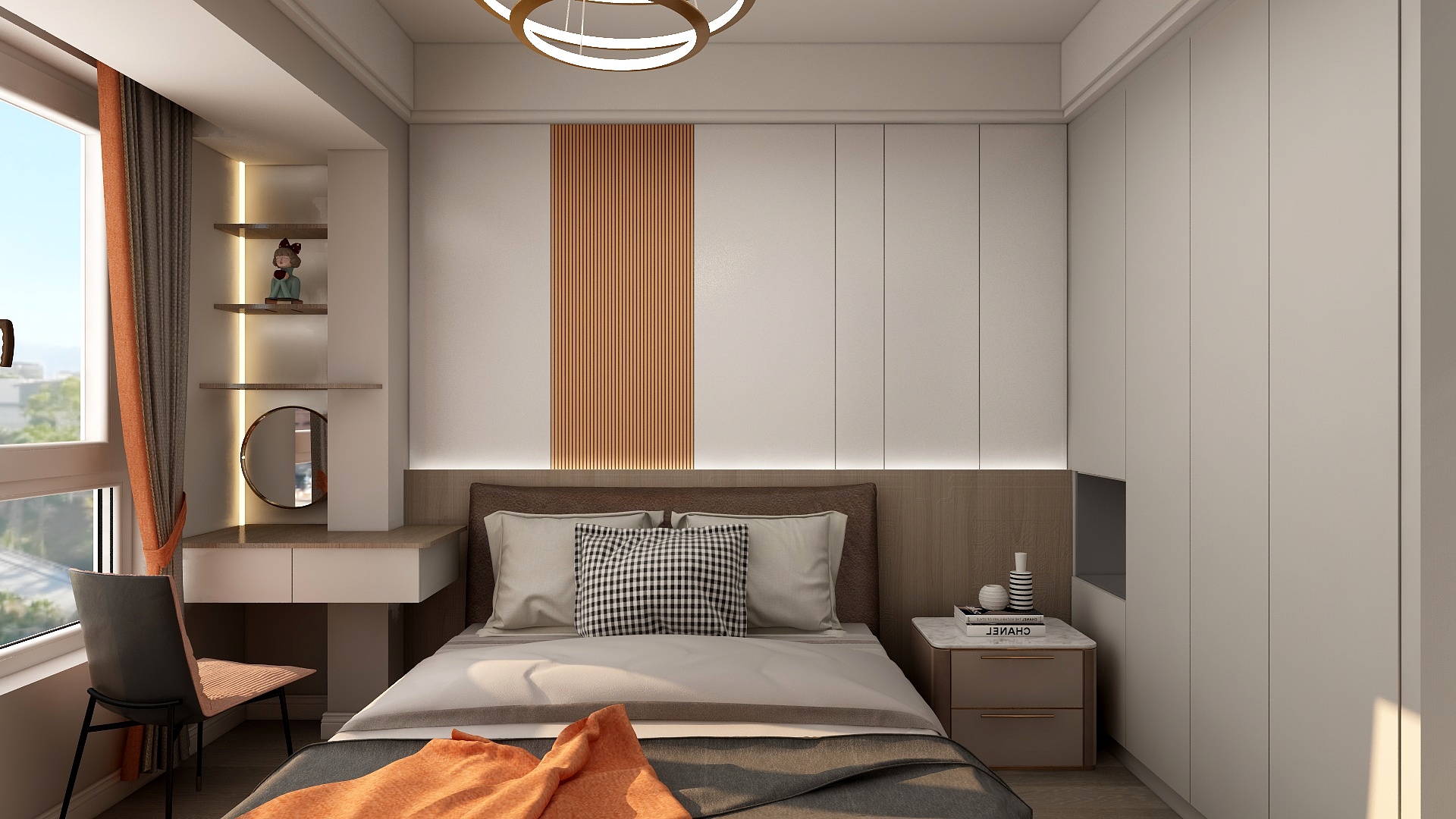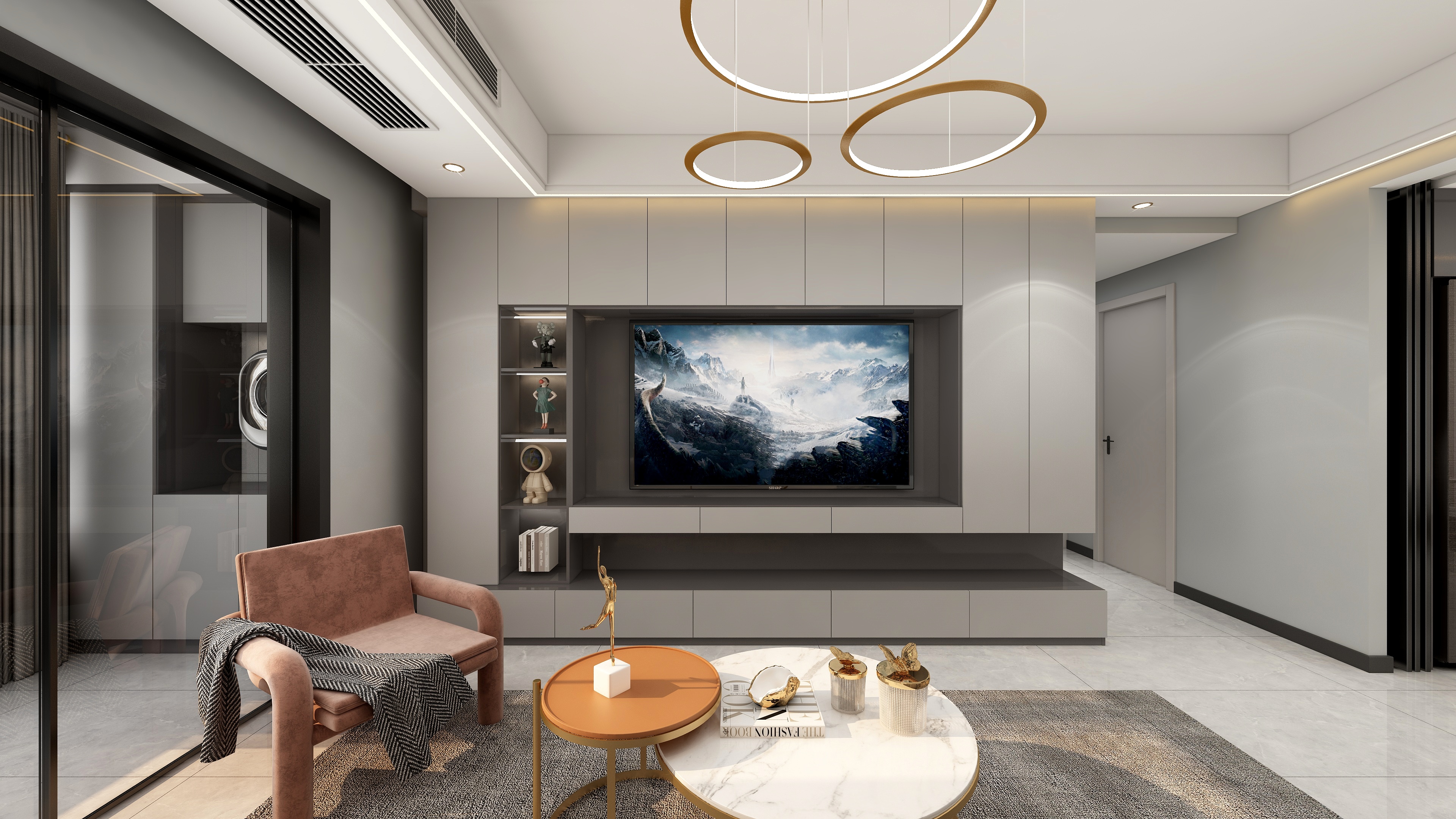 本方案設計簡潔大方,時尚前衛,電視背景采用高級灰色調組合式電視柜,美觀實用完美結合,廚房開敞式的空間,活動式的白色巖板餐桌和櫥柜臺面融合為一體,廚房操作用餐都非常方便,主臥簡單整潔的氛圍,優雅的奶咖色讓整個空間暖意融融,溫馨高級不失沉穩。