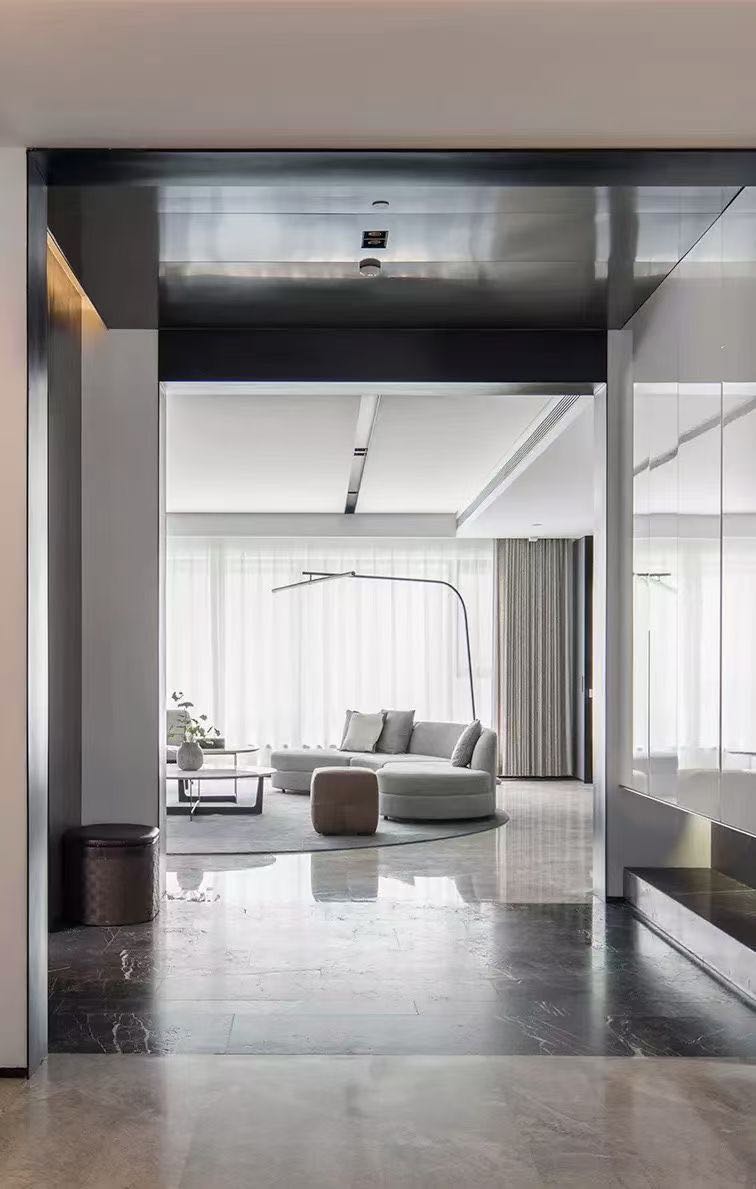 本案業主一家三口居住,喜歡沉穩時尚的家居生活,在設計時,以高品質、簡單化為理念,設計出主體簡潔大方,但又給人時尚、大方、穩重,并且兼有舒適感。 材質的搭配是設計的關鍵和重點,深色木紋色墻板及灰色地磚,窗簾壁紙的柔和觸感,都有現代的元素特征,典雅種帶著品味,閑適間吐露個性,整個空間充滿藝術的文化氛圍。
