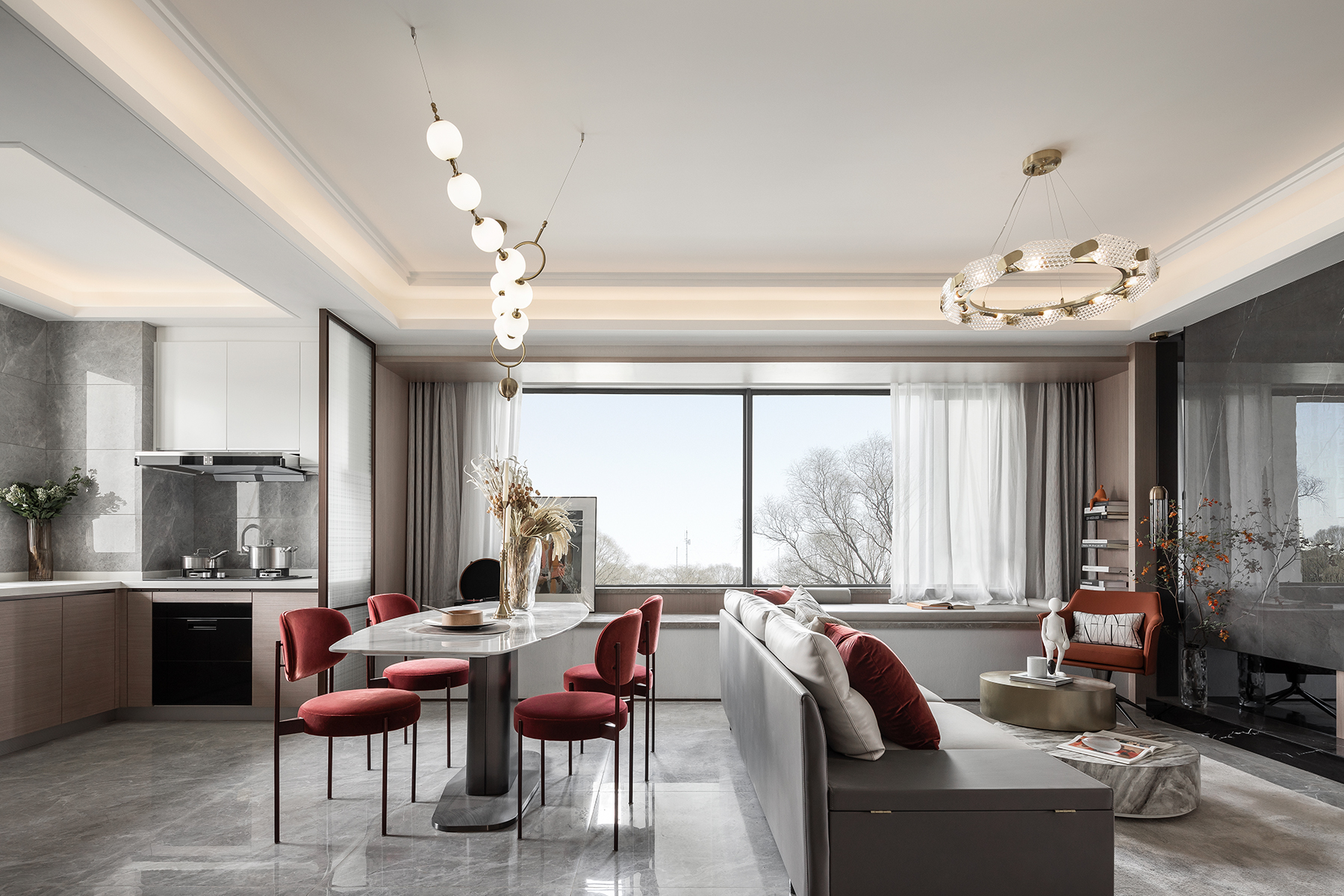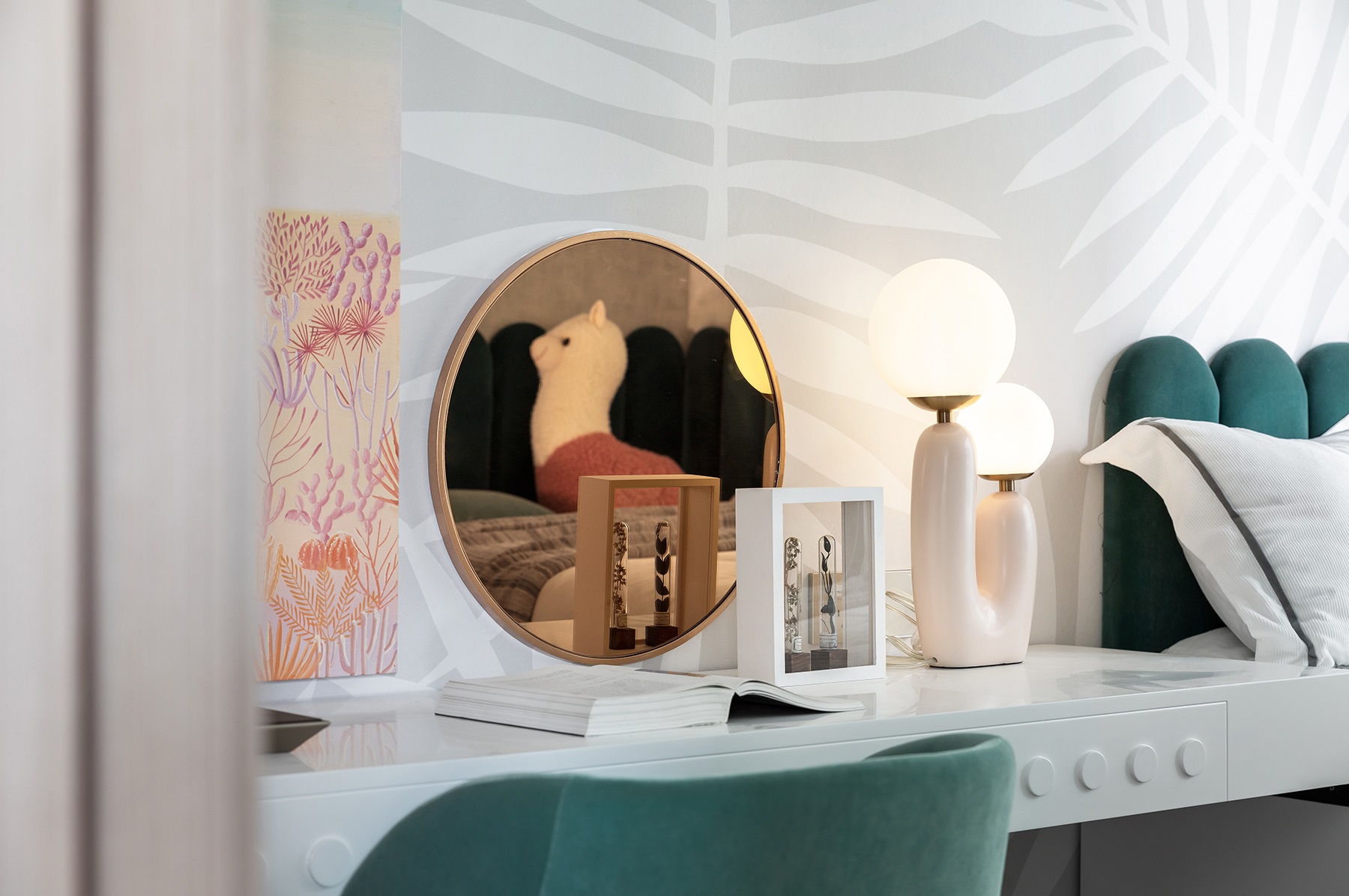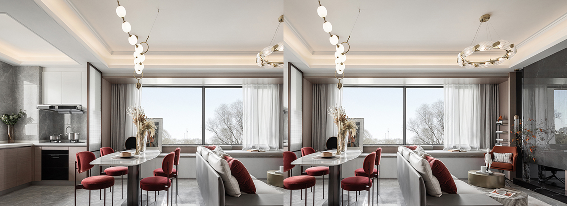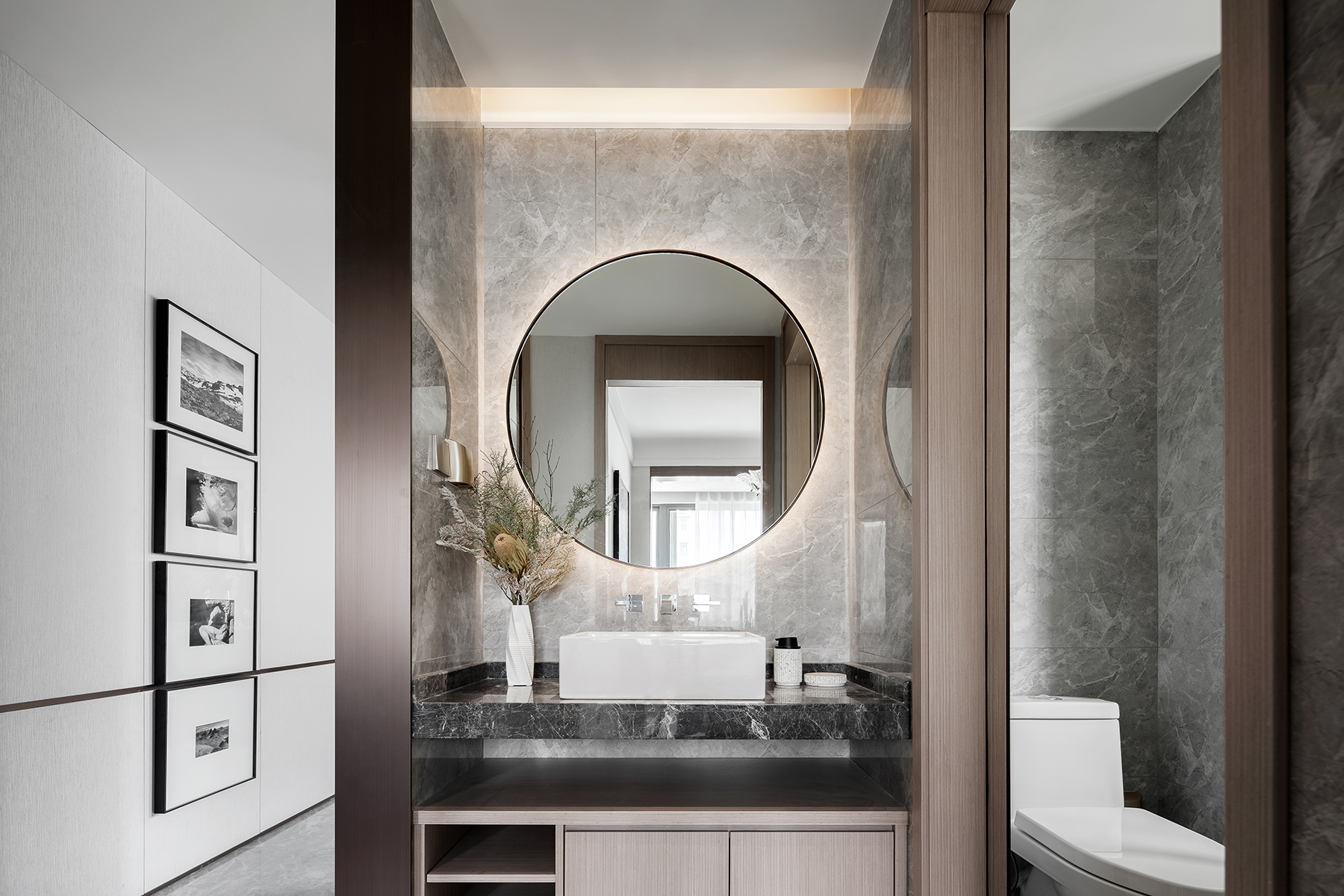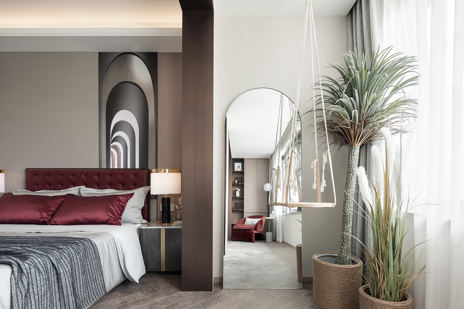 本案專為都市新女性度身設計。消費對象的定位是出生于八十年代的、生活在三環內的都市時尚女性。她年輕,驕傲而矜持,自我欣賞并鐘愛舞臺,追自由前衛的個性同時又享受著生活。鏡面的影像令空間伸延,粉紫色軟織物系統配飾以神秘、溫婉的風格表明女主人的身份。