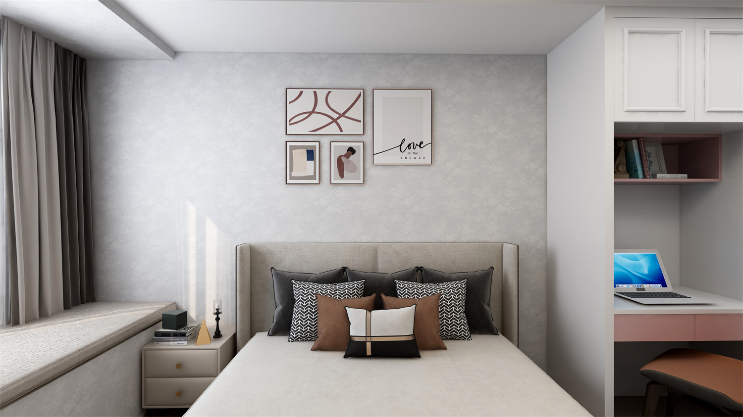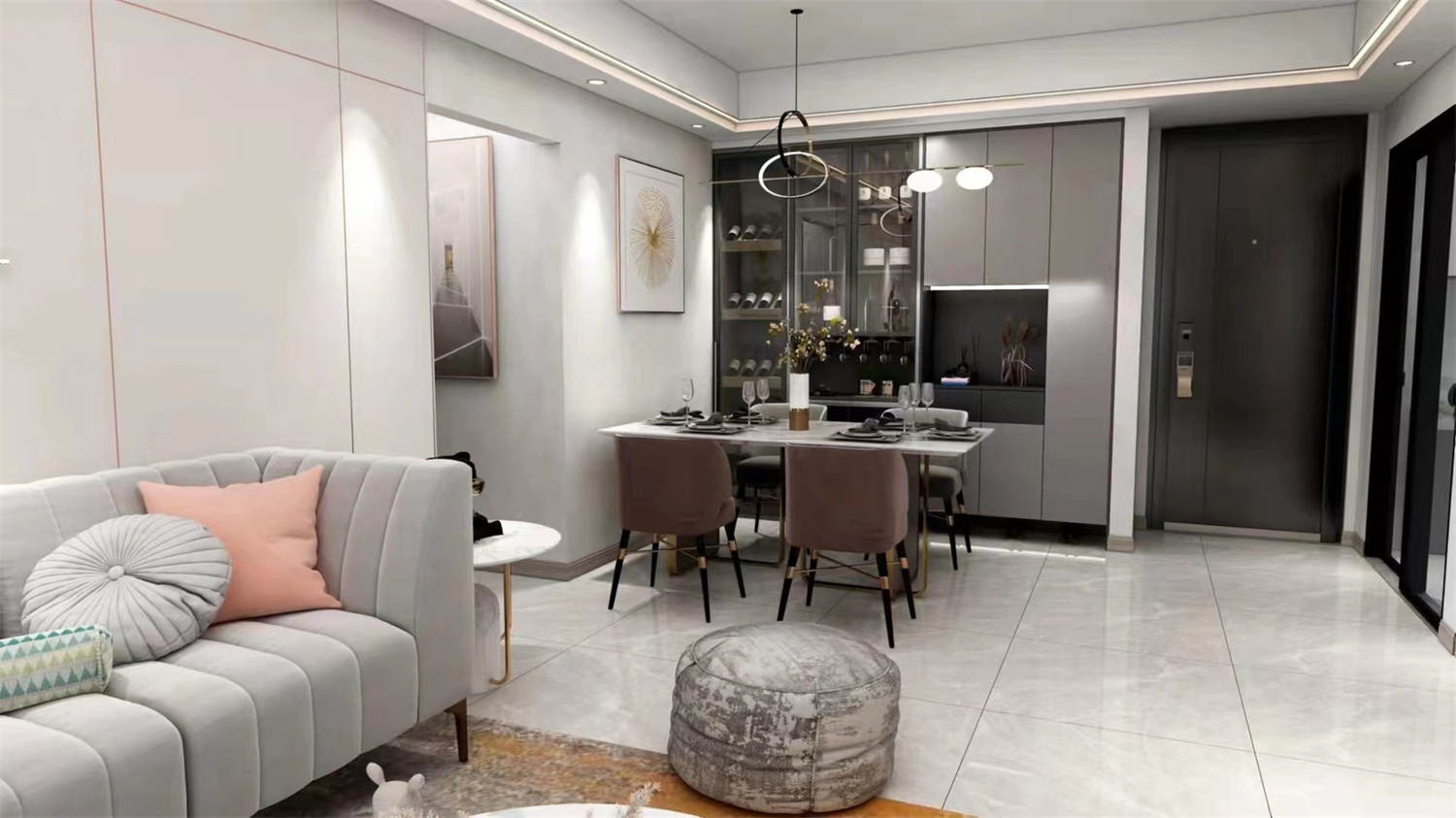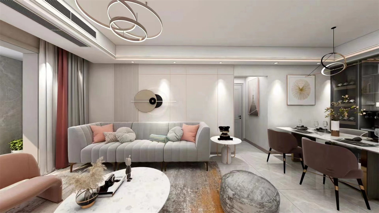 整體設計選用了較為柔和的淺色調,輔以其它色彩點綴,帶來溫馨雅致的居家氛圍感。再融入一絲黃銅元素,提升了整體質感。光影之下,是低調質樸與掩不住的優雅魅力。