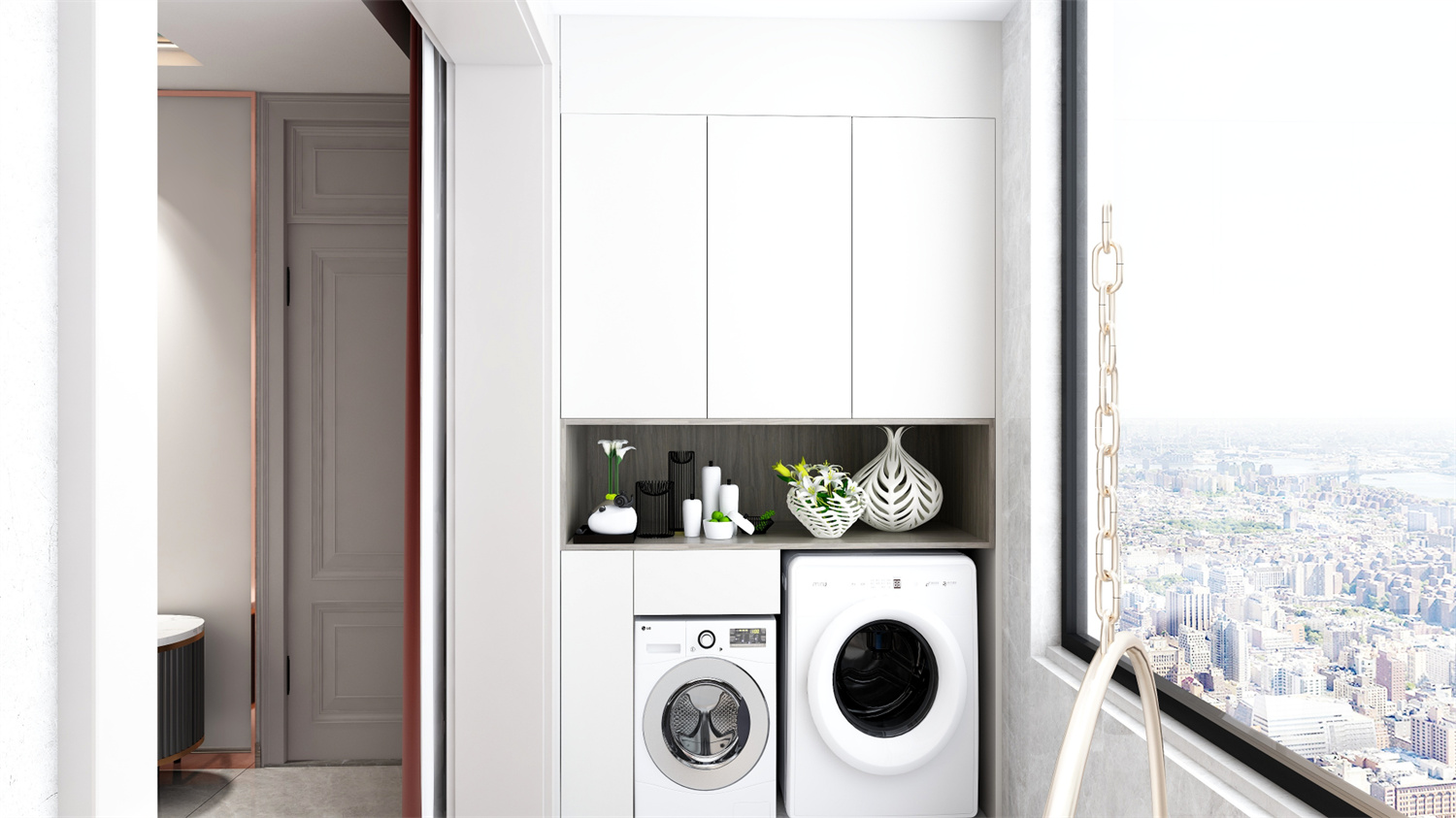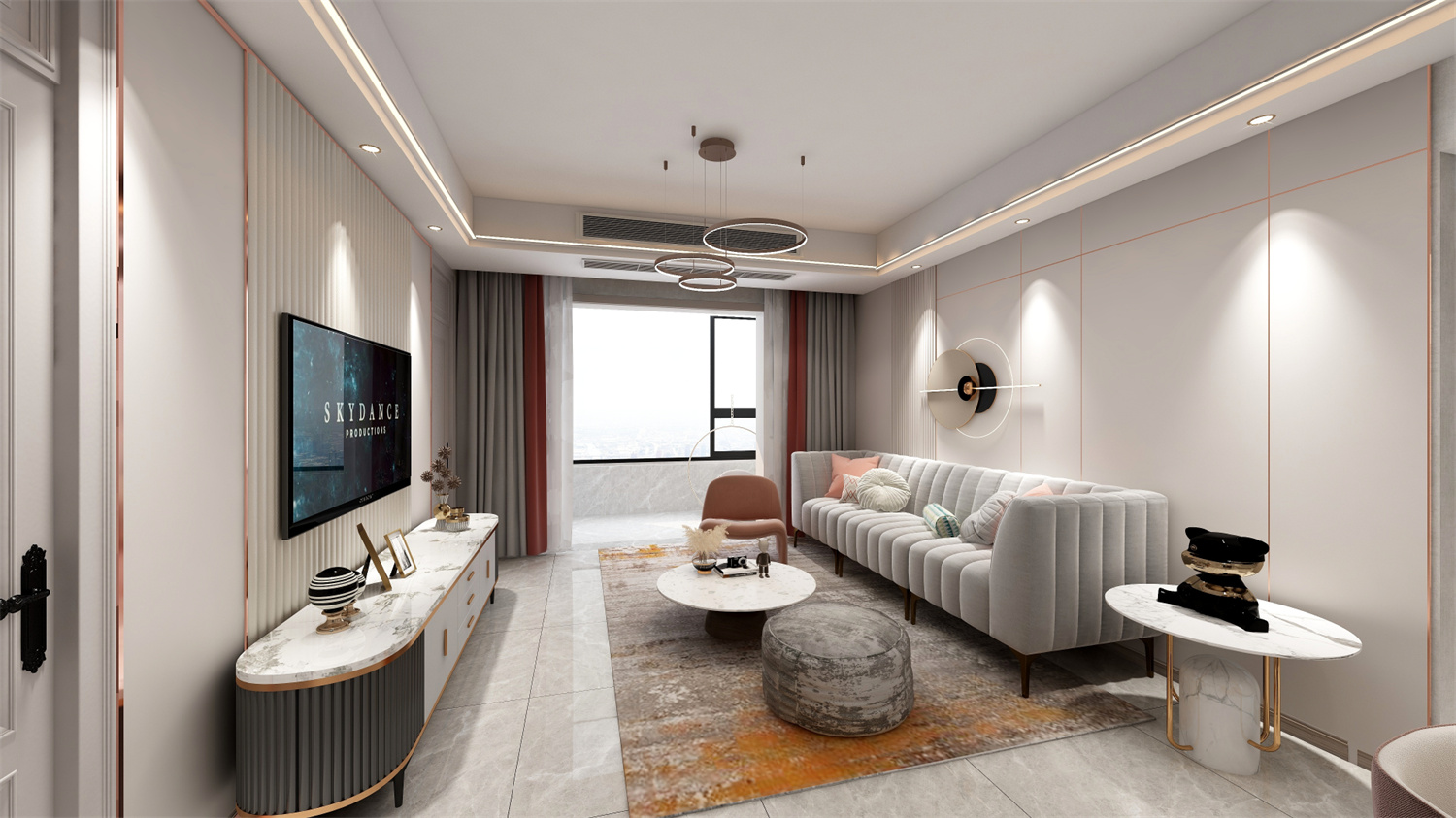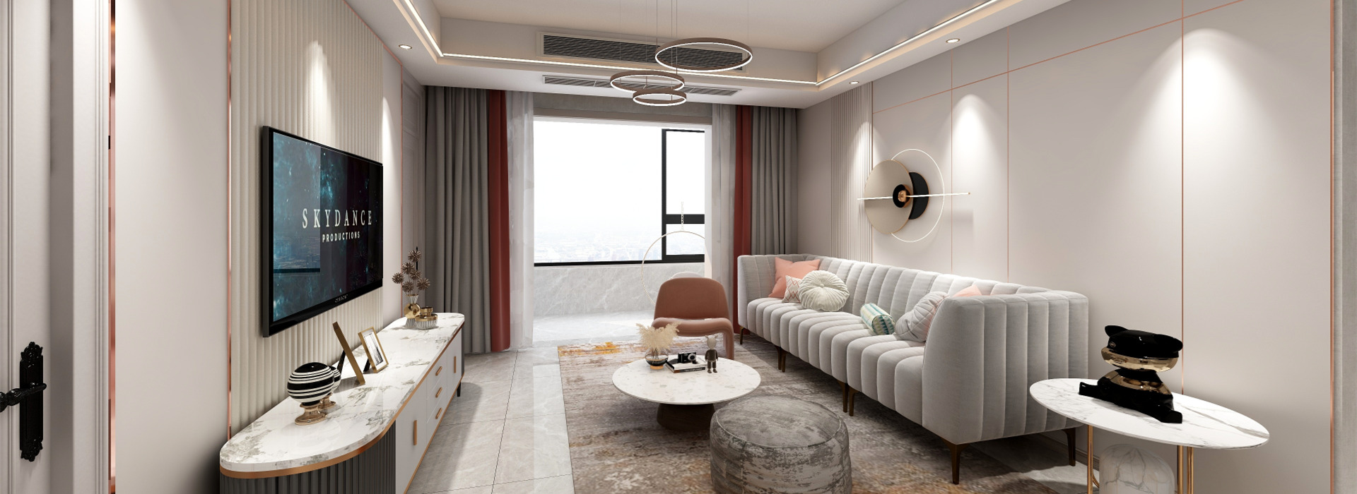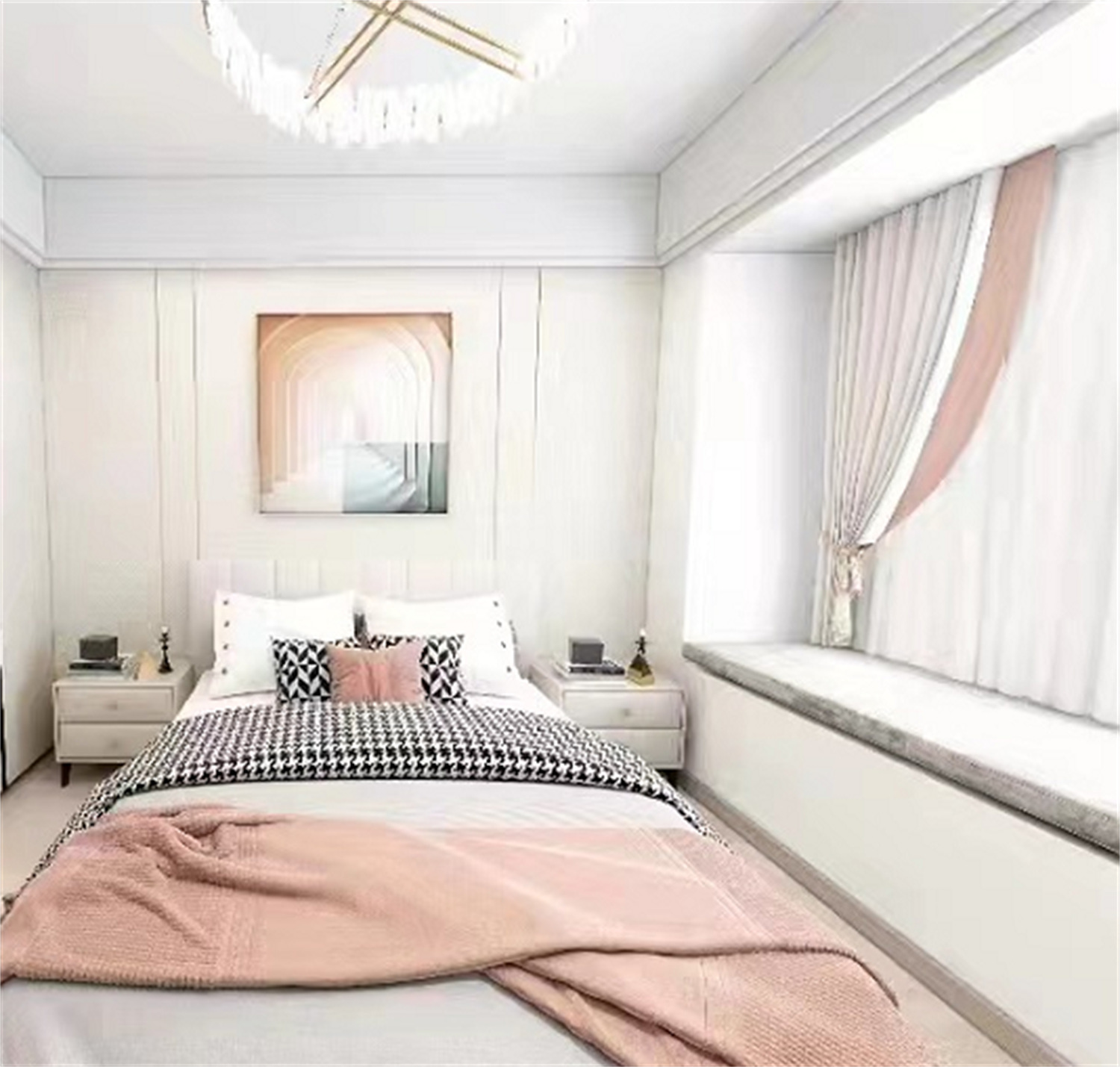 整體設計選用了較為柔和的淺色調,輔以其它色彩點綴,帶來溫馨雅致的居家氛圍感。再融入一絲黃銅元素,提升了整體質感。光影之下,是低調質樸與掩不住的優雅魅力。