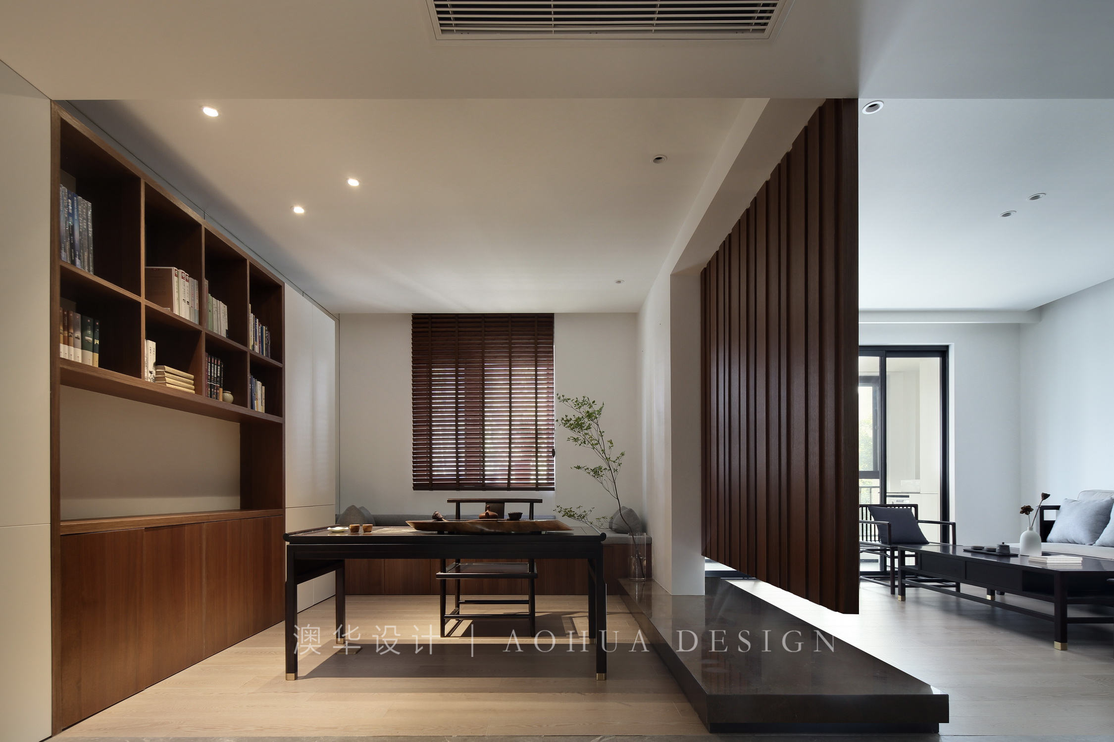 • 我們帶著一定的東方思維去做空間探索,餐廳、客廳和書房均為互通的空間形式,有如“庭院深深深幾許”的東方韻味。空間運用了一些懸挑、鏤空、留白等手法,體現當代東方含蓄優雅的品質。