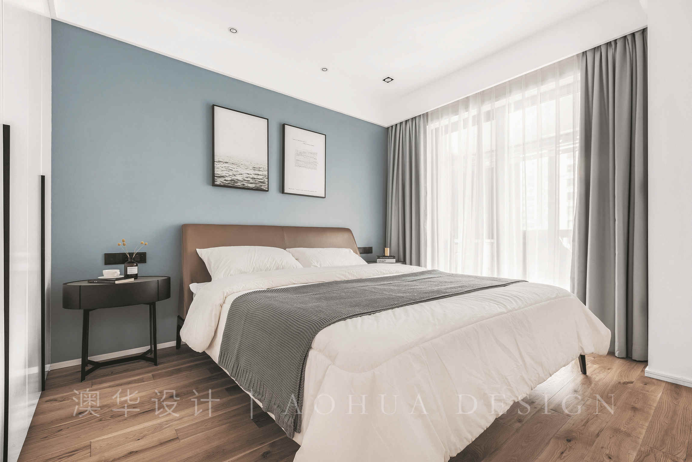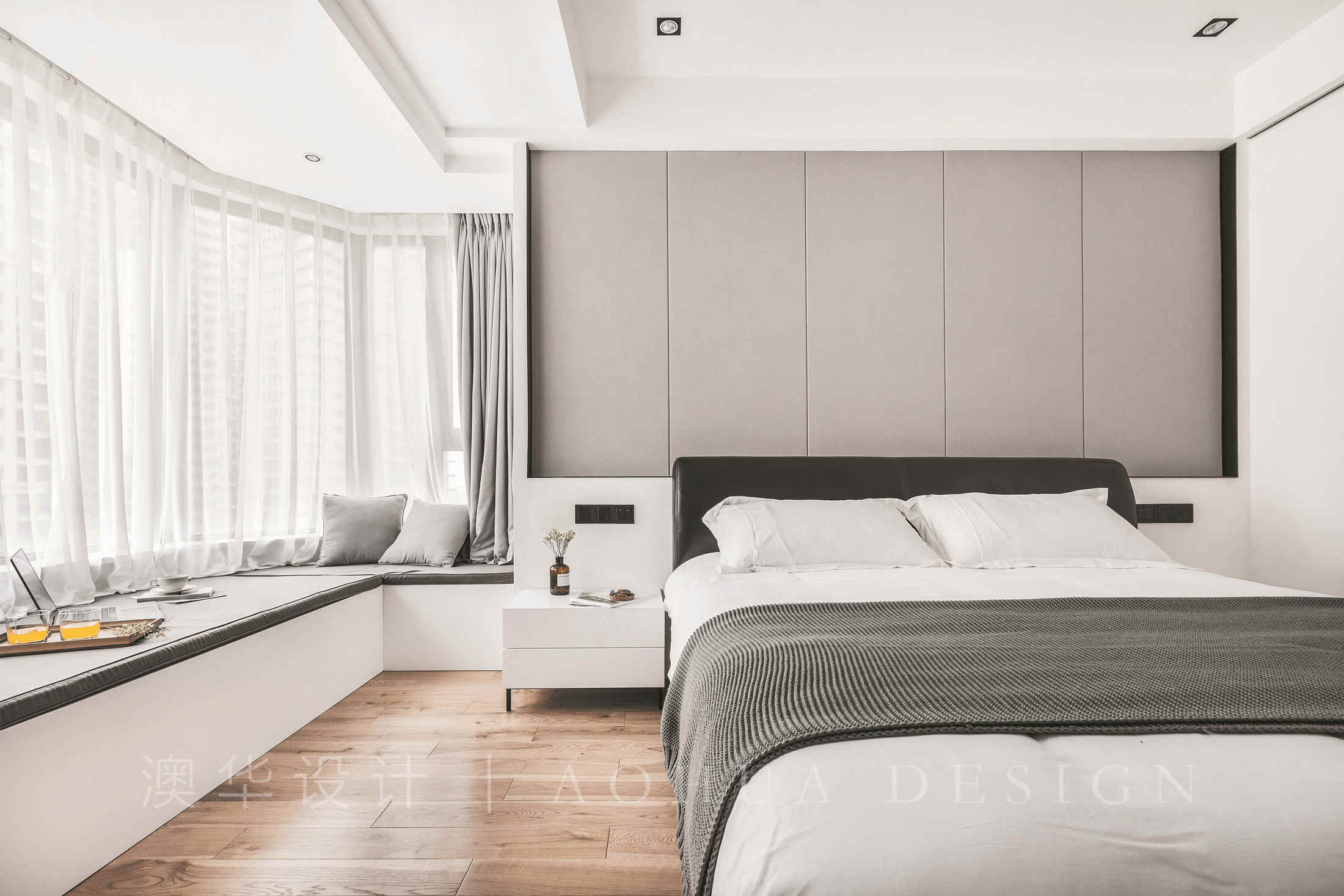 • 主臥的設計去繁求簡,沒有強烈的要素碰撞,只留下家的自然寧靜。將主臥窗臺做成大飄窗,可以臥坐于此賞景發呆,其下也可以收納雜物。