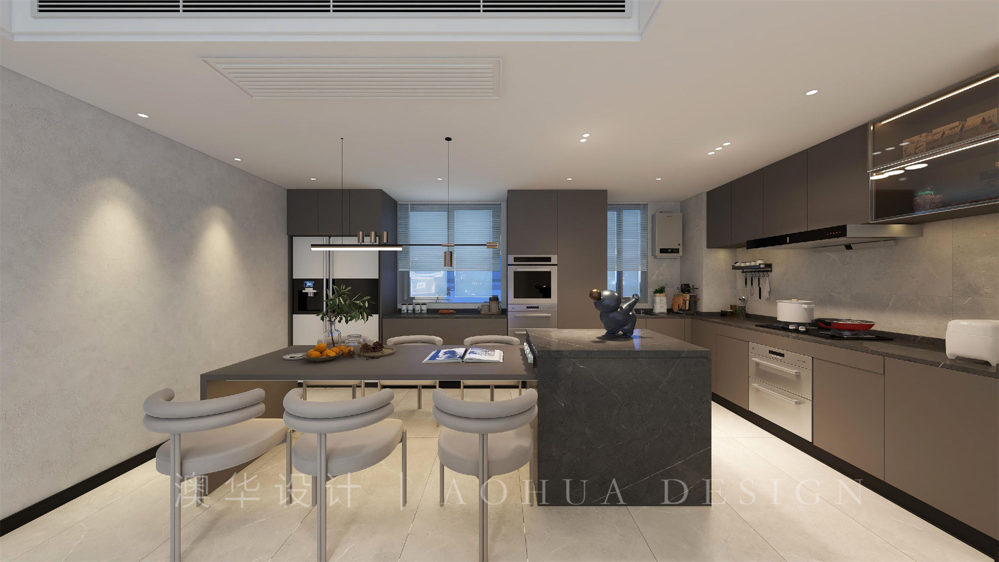 • 深色的地磚和亞光色巖板黑色餐桌,讓整個(gè)空間在色彩上有了一定的沖擊。但是突整個(gè)空間當(dāng)中的對(duì)比性。