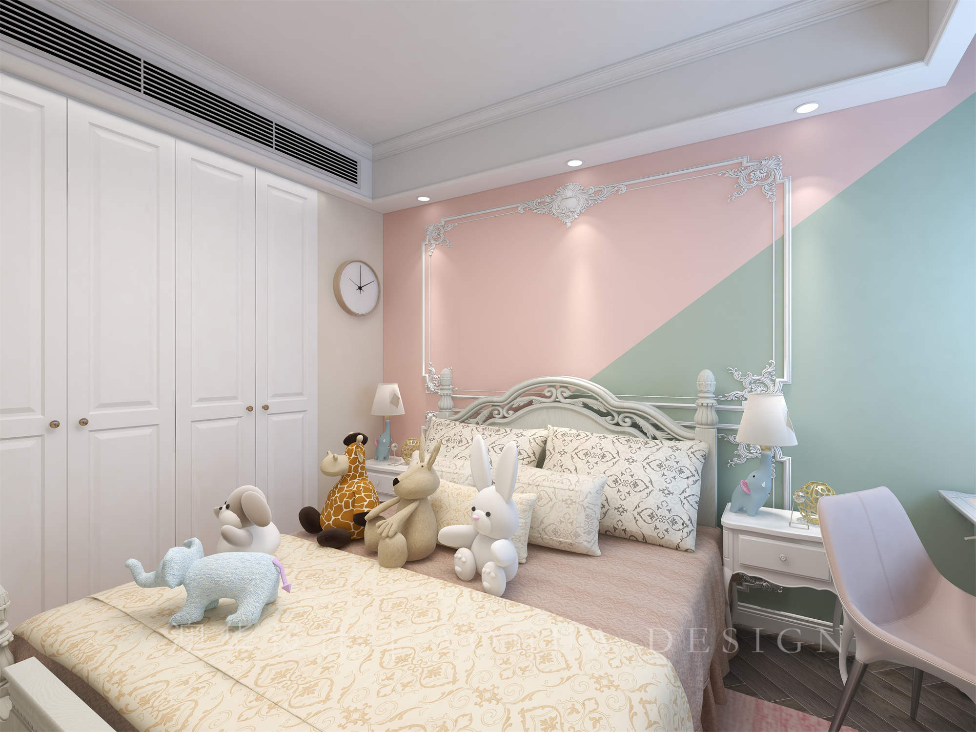 • 臥室在設(shè)計(jì)上更重視的是實(shí)用與舒適,屋主需要一個(gè)超大衣帽間,所以我們?cè)诒M可能少改動(dòng)的前提下,擴(kuò)大了進(jìn)出主臥走廊空間,