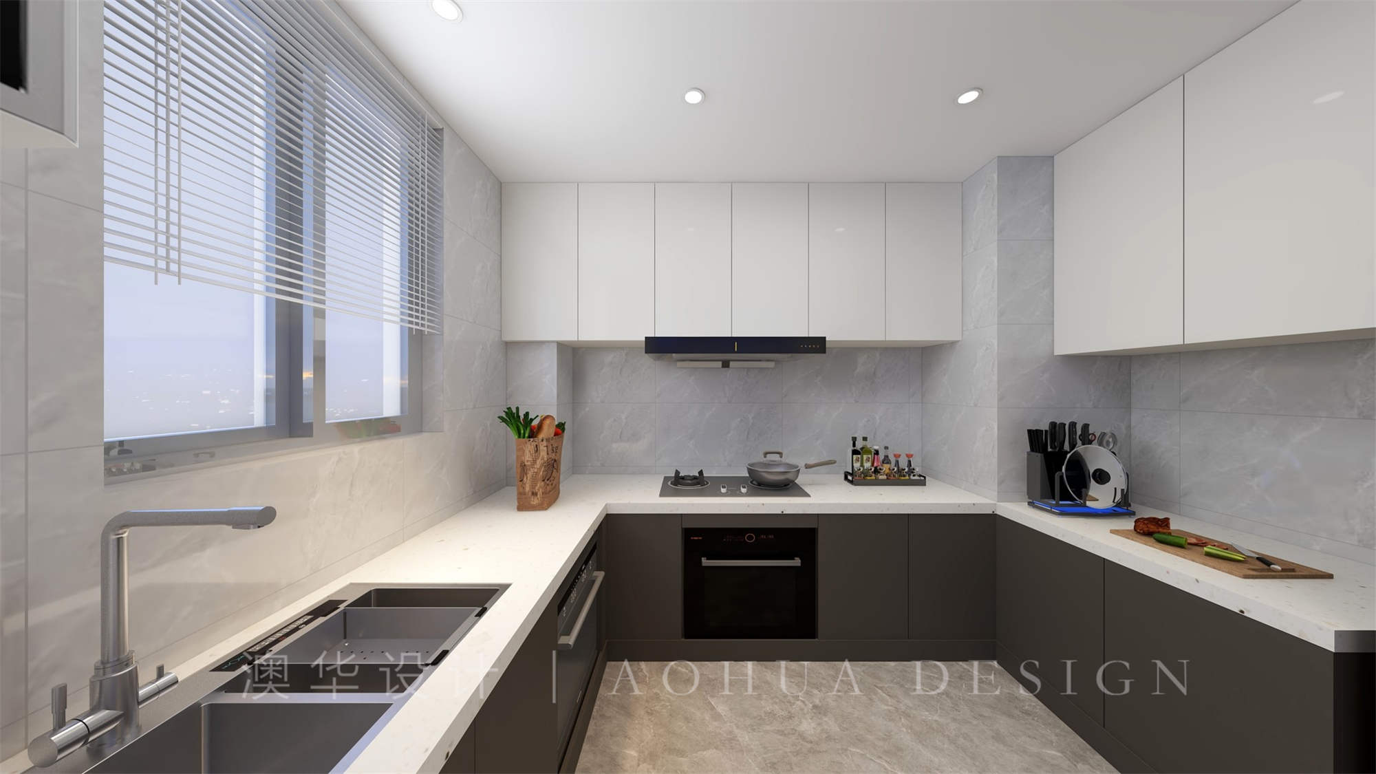 • 設計師將廚房門設計為軌道門,進出空間擴大,西廚延伸到餐廳,有更多操作臺的地方。