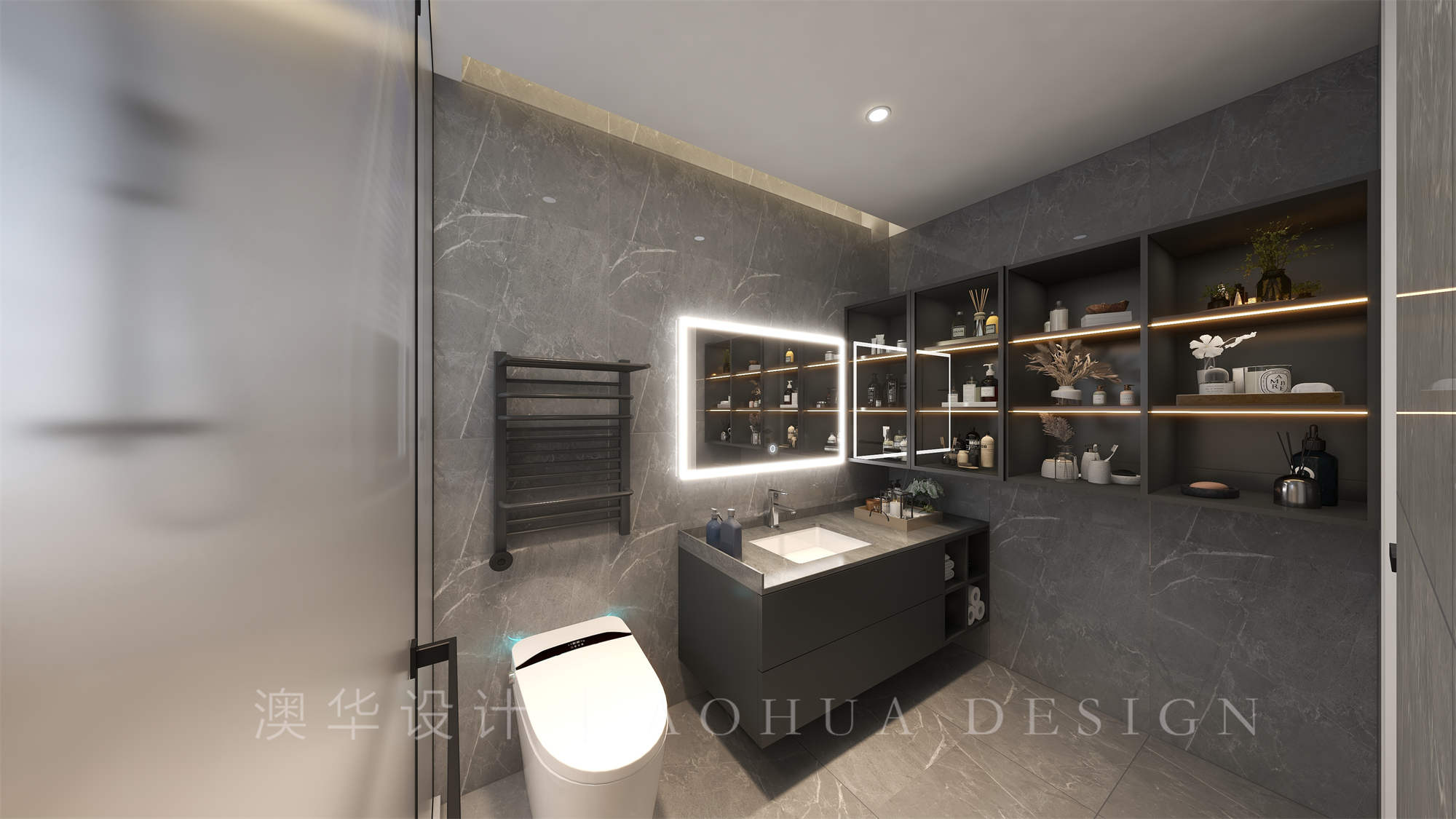 • 設計師將衛生間設計為三分離,給到干濕區足夠大的空間,做了側浴室柜,增加衛生間收納。