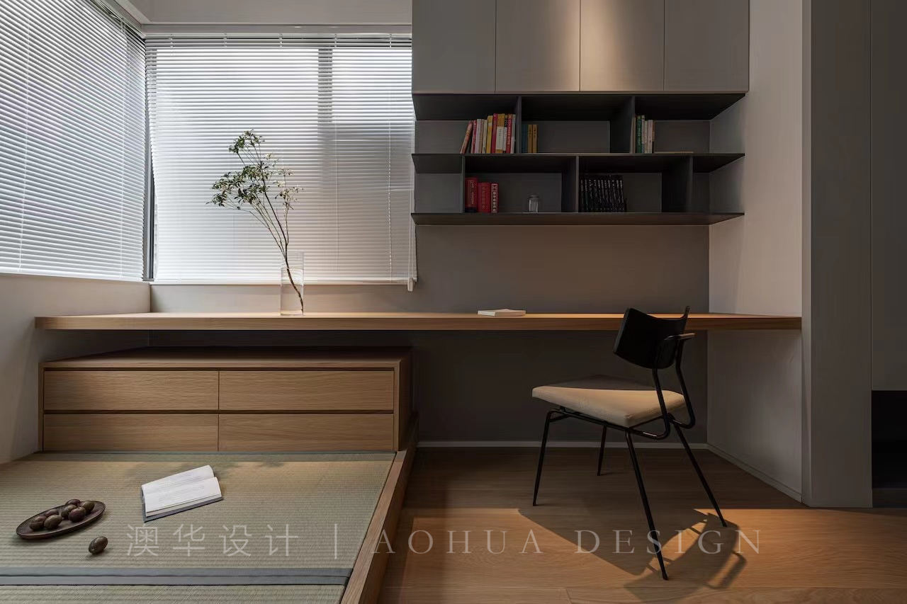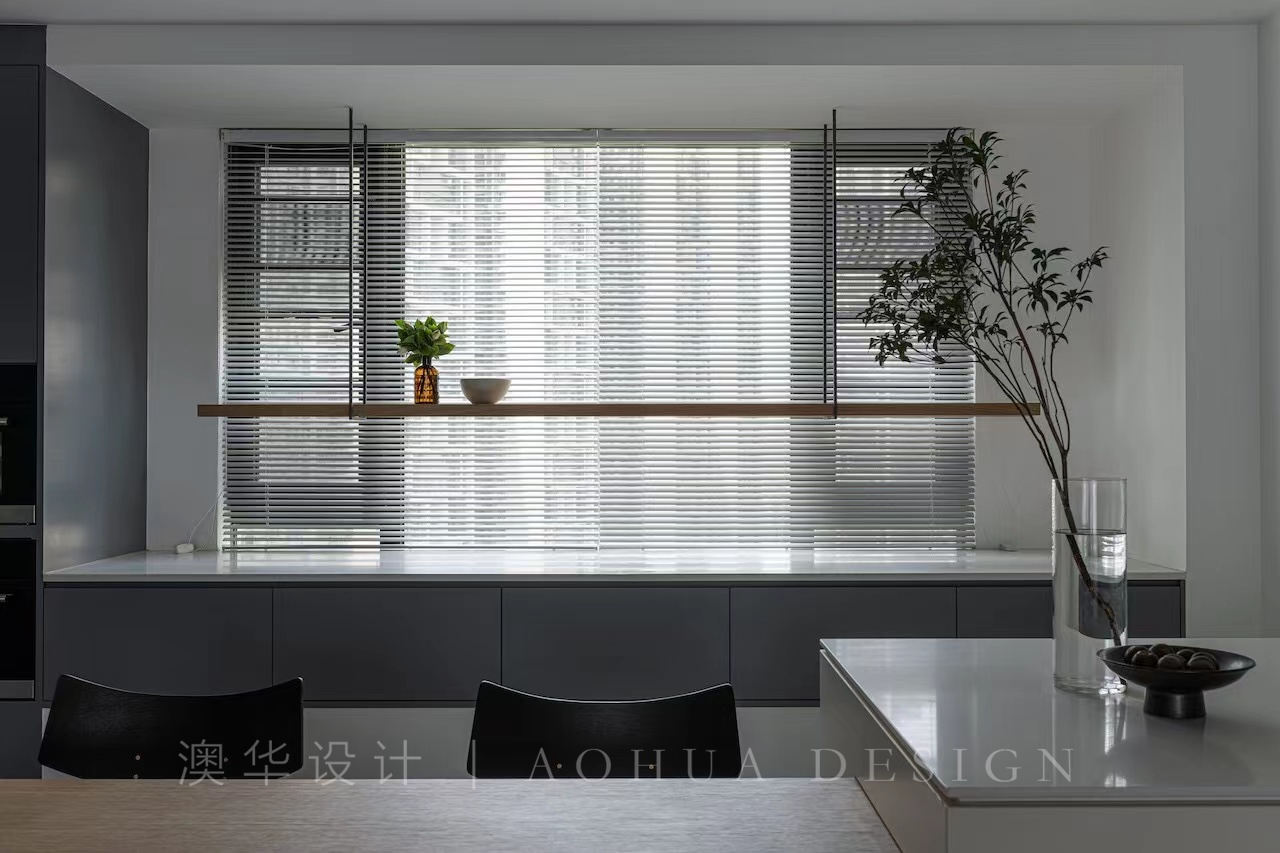 • 餐廳的島臺餐桌一體式設計,中島臺與餐桌錯落有致,體現層次感的同時,顯示不同位置的功能性,桌子集用餐和閱讀于同一區域,讓日常生活更加便利。