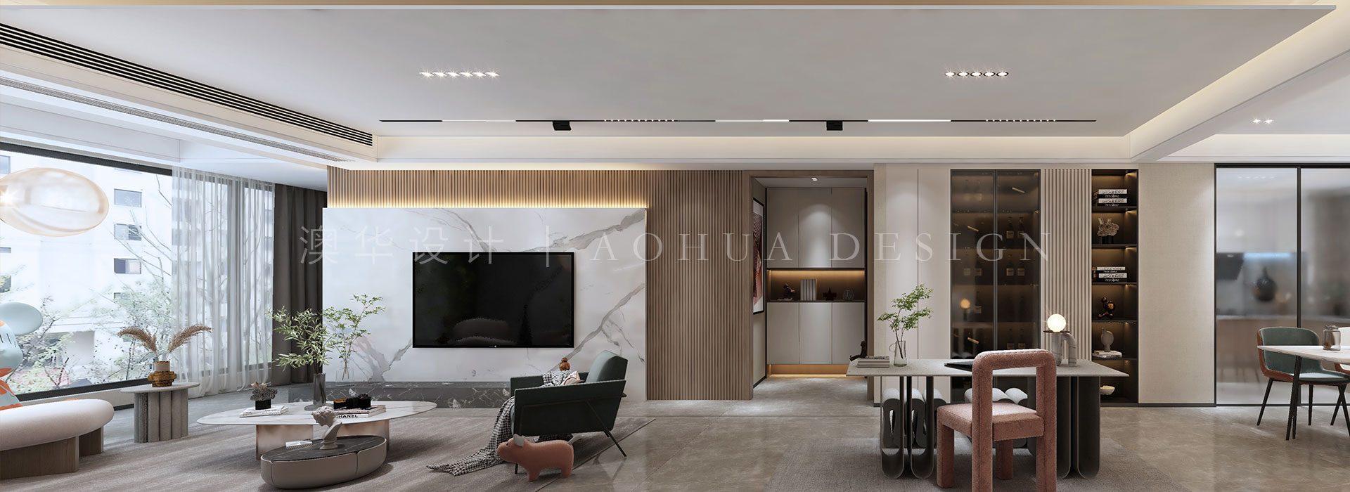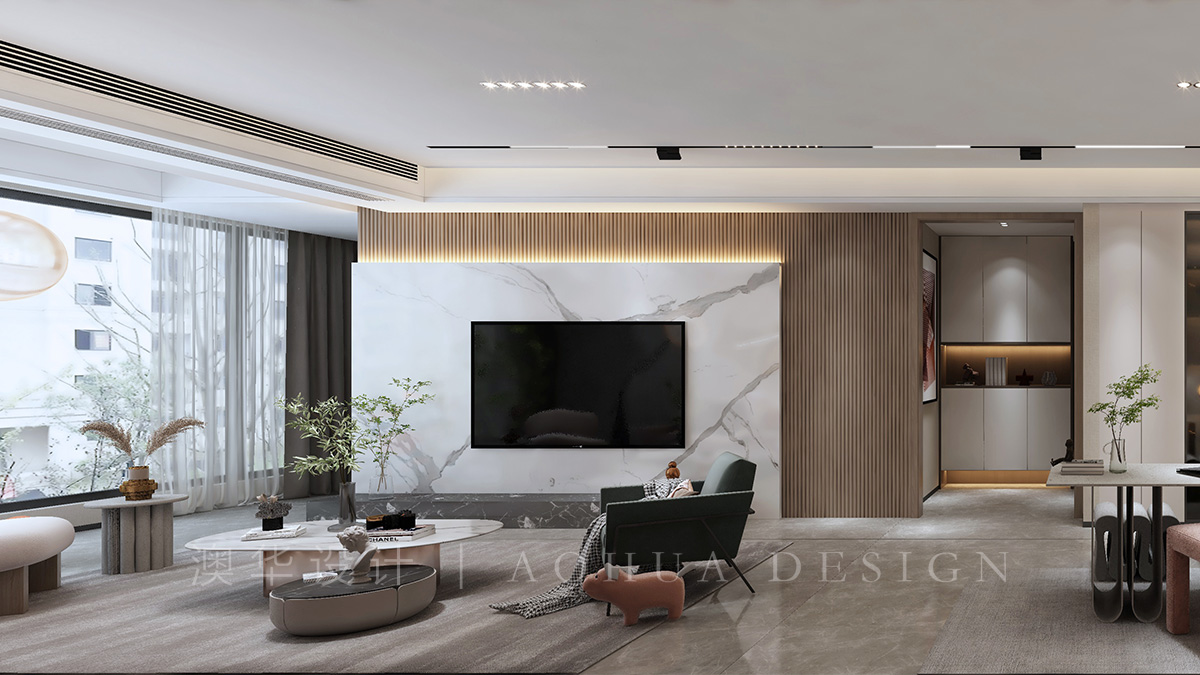 • 起筆于全方位的開(kāi)放互聯(lián),打造客廳N+1新布局,柔和的灰調(diào)與明亮的焦糖色系,運(yùn)用質(zhì)感細(xì)膩溫潤(rùn)的選材,營(yíng)造出一室融融的暖意,共同描繪出時(shí)尚雅致的氛圍。從容有度的節(jié)奏,富有質(zhì)感的元素,讓居者在安靜而舒緩的的狀態(tài)下體會(huì)空間的個(gè)性與柔美。