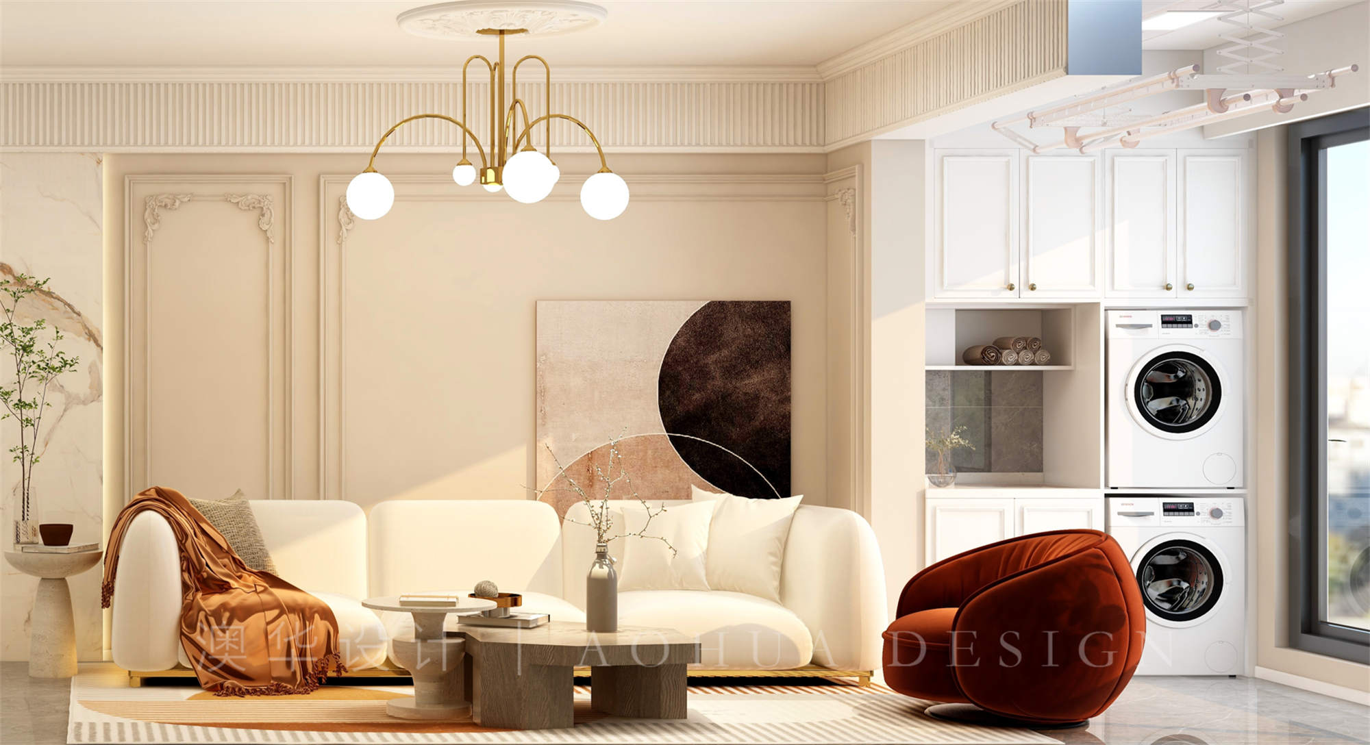• 客廳陽臺通鋪保持空間連貫性,法式拱門設計.打破門框線條的硬朗感更頃一份柔和溫馨的法式氛圍,家居軟裝簡約又不乏設計感,奶呼呼軟綿綿的泡泡沙發(fā),填補了空曠感,增加了生活的溫度