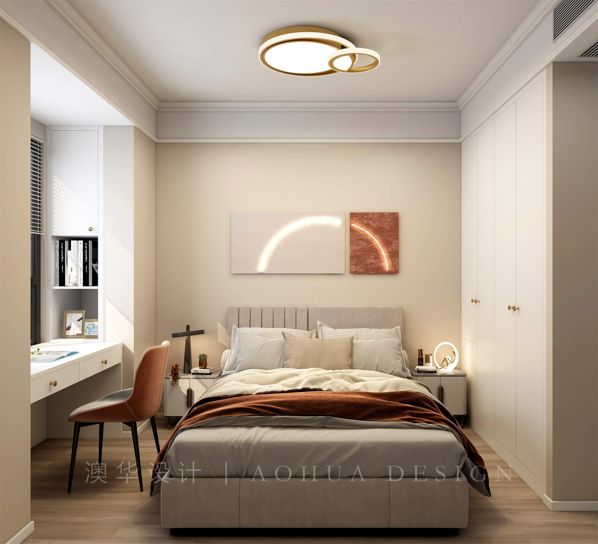• 主臥的飄窗拆除,增加了更多的使用面積,色彩搭配上更富有層次感