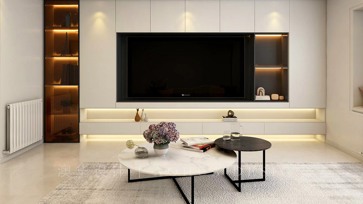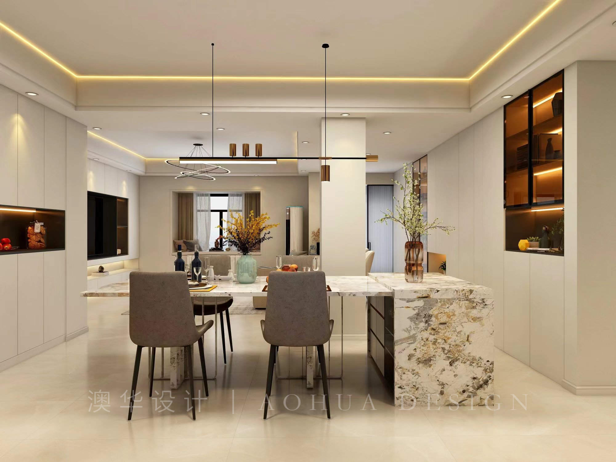 將原有的四房改為三房,在客廳增加更多的儲物功能,吧臺設計增加了辦公區域,增加了區域使用功能
