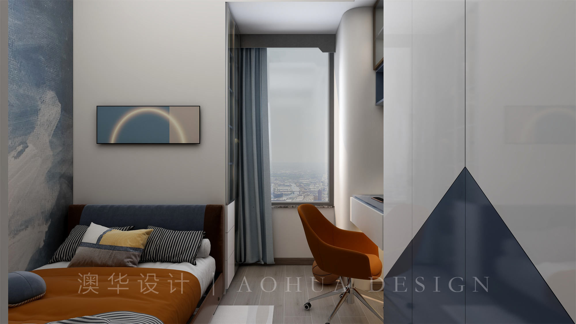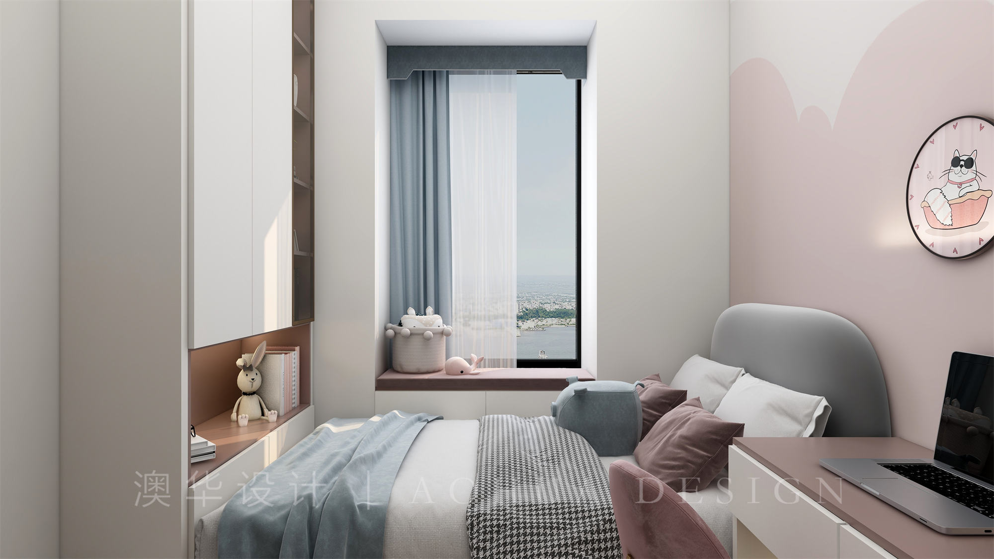 • 通過采用榻榻米和異形開放格設計,增加了女孩房的儲物空間和趣味性。
