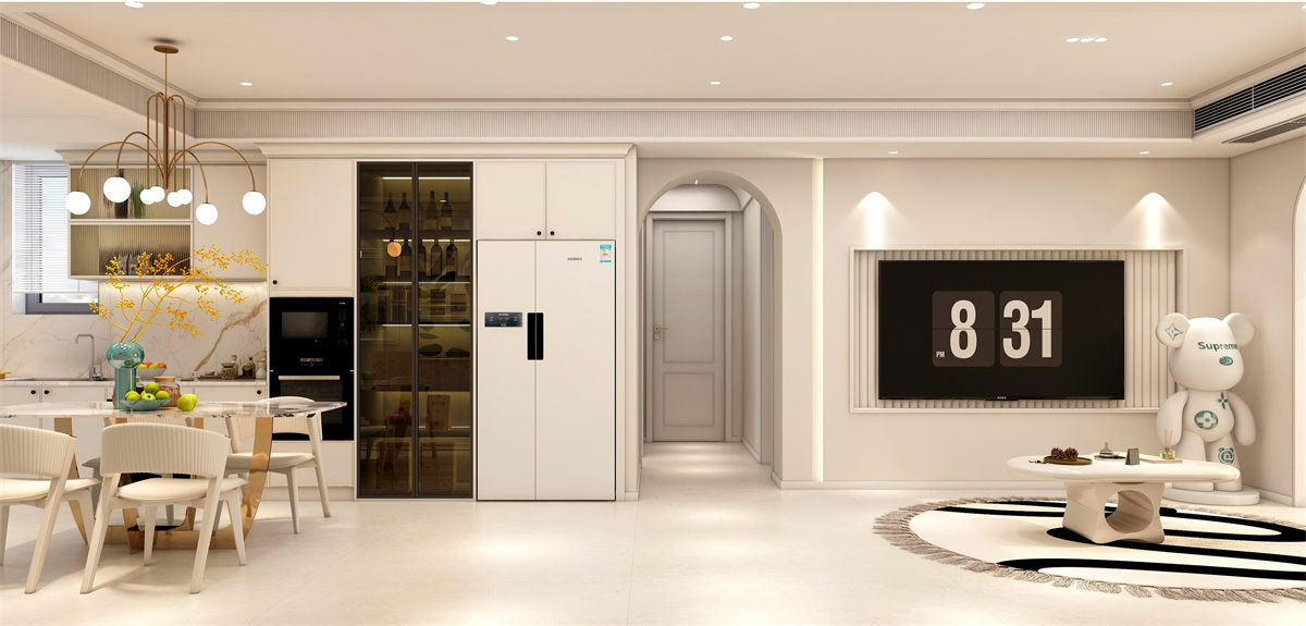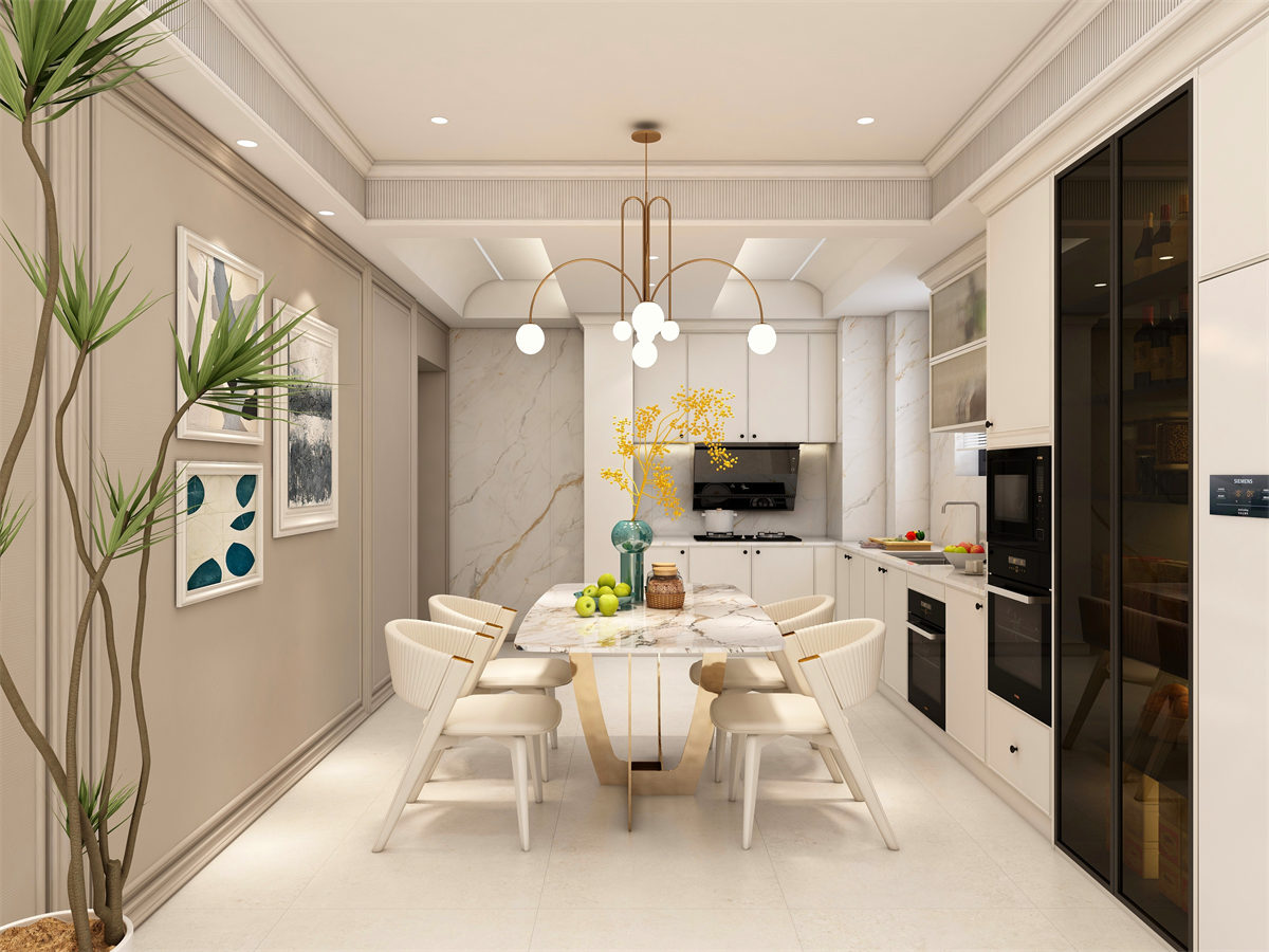輕奢新法式風格演繹官廷法式的精致優雅,在線條上簡化。化繁為簡,通過細致的雕刻,栩栩如生的逼真造型,演繹時尚法式的清新韻味。選擇淡雅、低調的設計來打造現代式的輕奢感。主要突出對稱的布局方式,再結合幾何線條與淺色的空間色彩。打造出一個法式輕奢主義的空間格調。