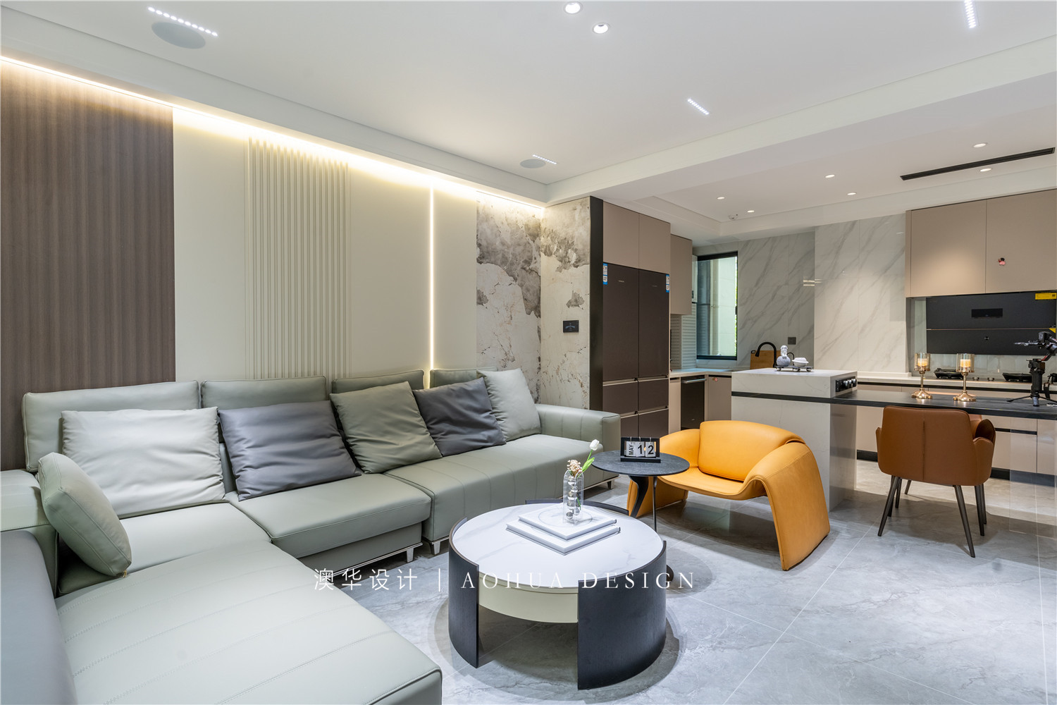 • 簡約吊頂搭配無主燈設(shè)計(jì),輕盈而通透;線性燈帶光源多變,滿足不同場景的照明需求,讓生活更有情調(diào)。