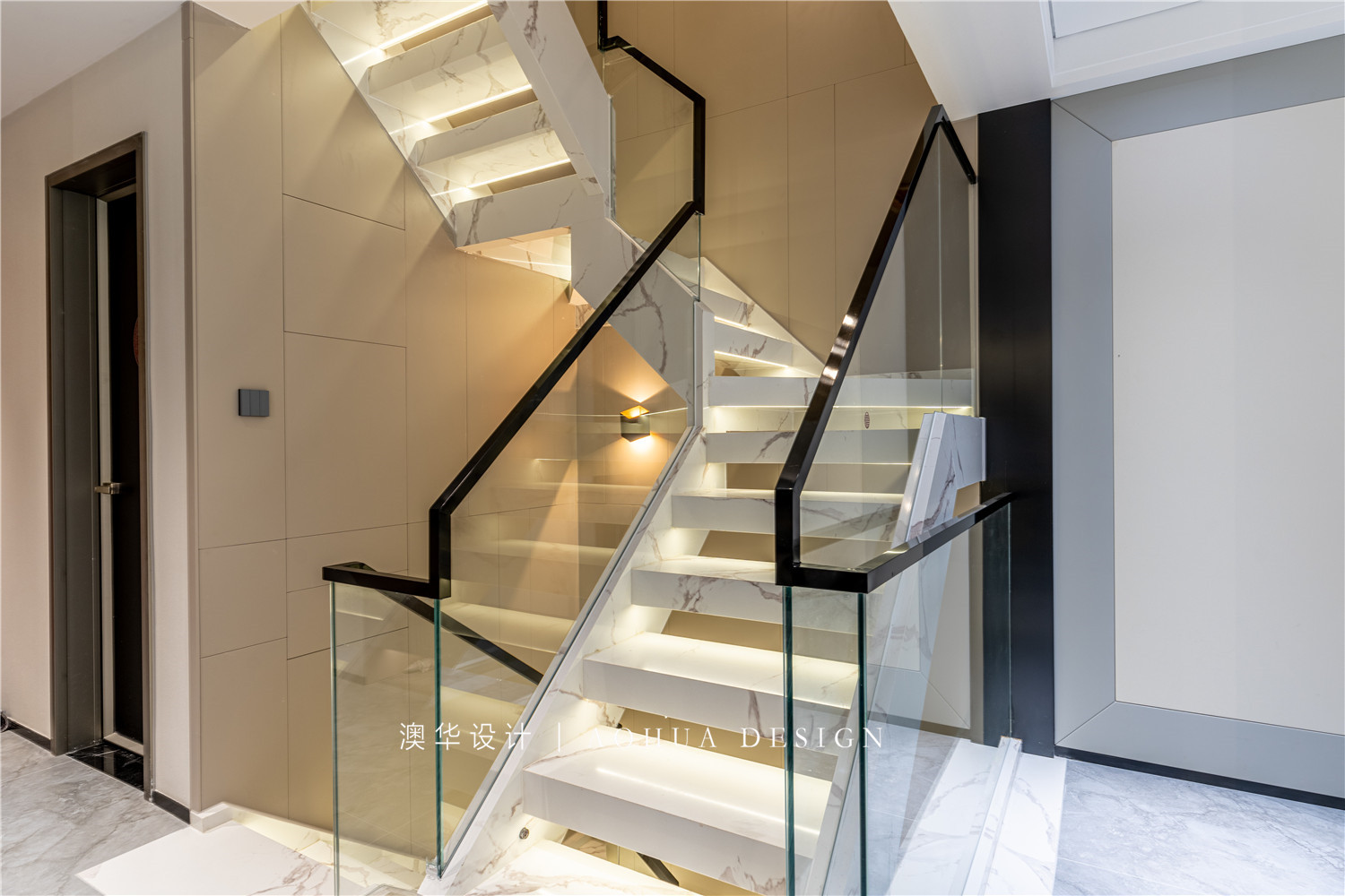 • 以鋼結(jié)構(gòu)為基礎(chǔ),每一踏步間不設(shè)隔斷,做出懸空疊積的效果,任憑空氣與燈帶在結(jié)構(gòu)中碰撞、折疊、落下光影,以視覺、功用演繹場域關(guān)聯(lián)與層次變化。