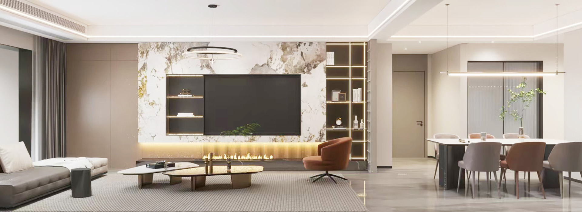 采用一體式設計,開放式格局,增加空間層次感,簡單的線條設計,共譜一份和諧柔美的時尚輕奢感。