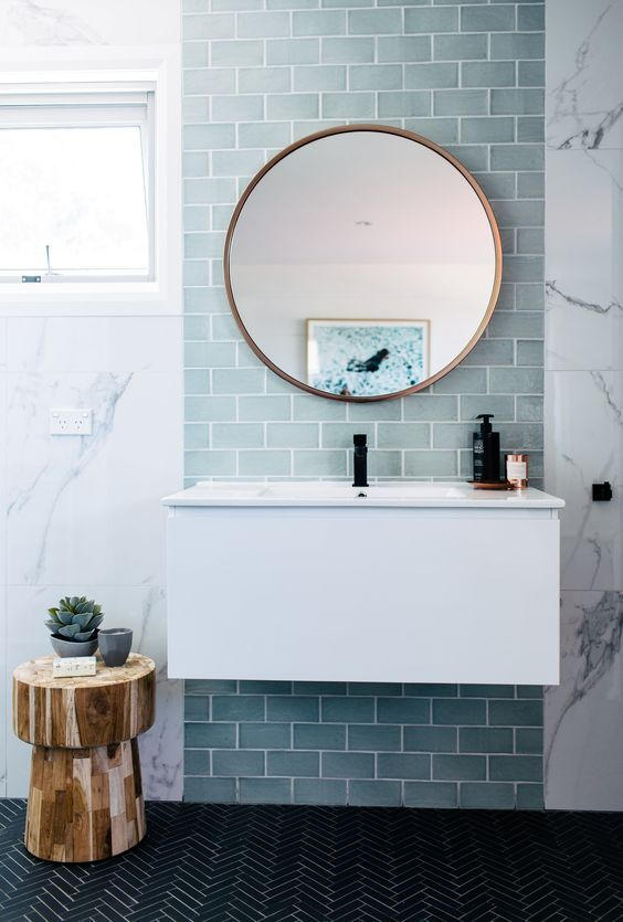 ? ? ? ?▲?由于花磚本身的特殊性,一般不建議把花磚鋪滿整個空間。不妨打造出一個視覺焦點,選取你想制造亮點的地方,然后用一些花磚做為點綴。比如用不同花色的磚塊將洗手臺區域獨立出來,或僅僅在壁龕內部鋪上花磚,都能顯得別具匠心。